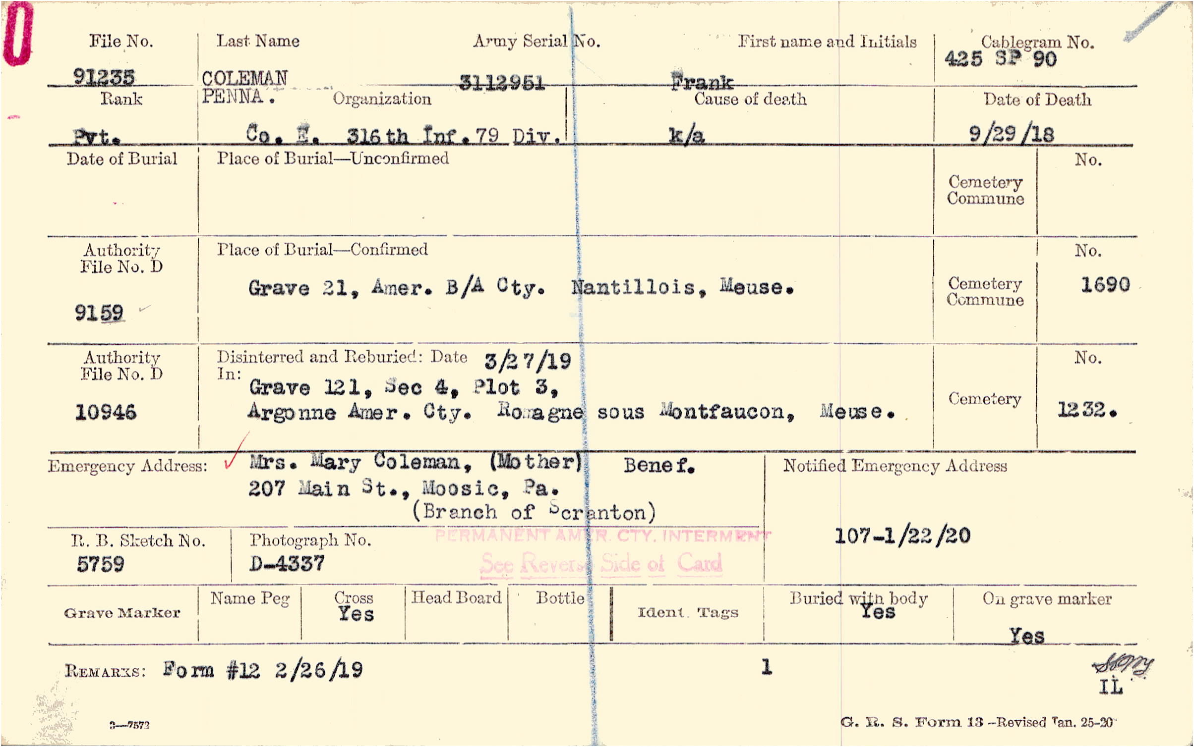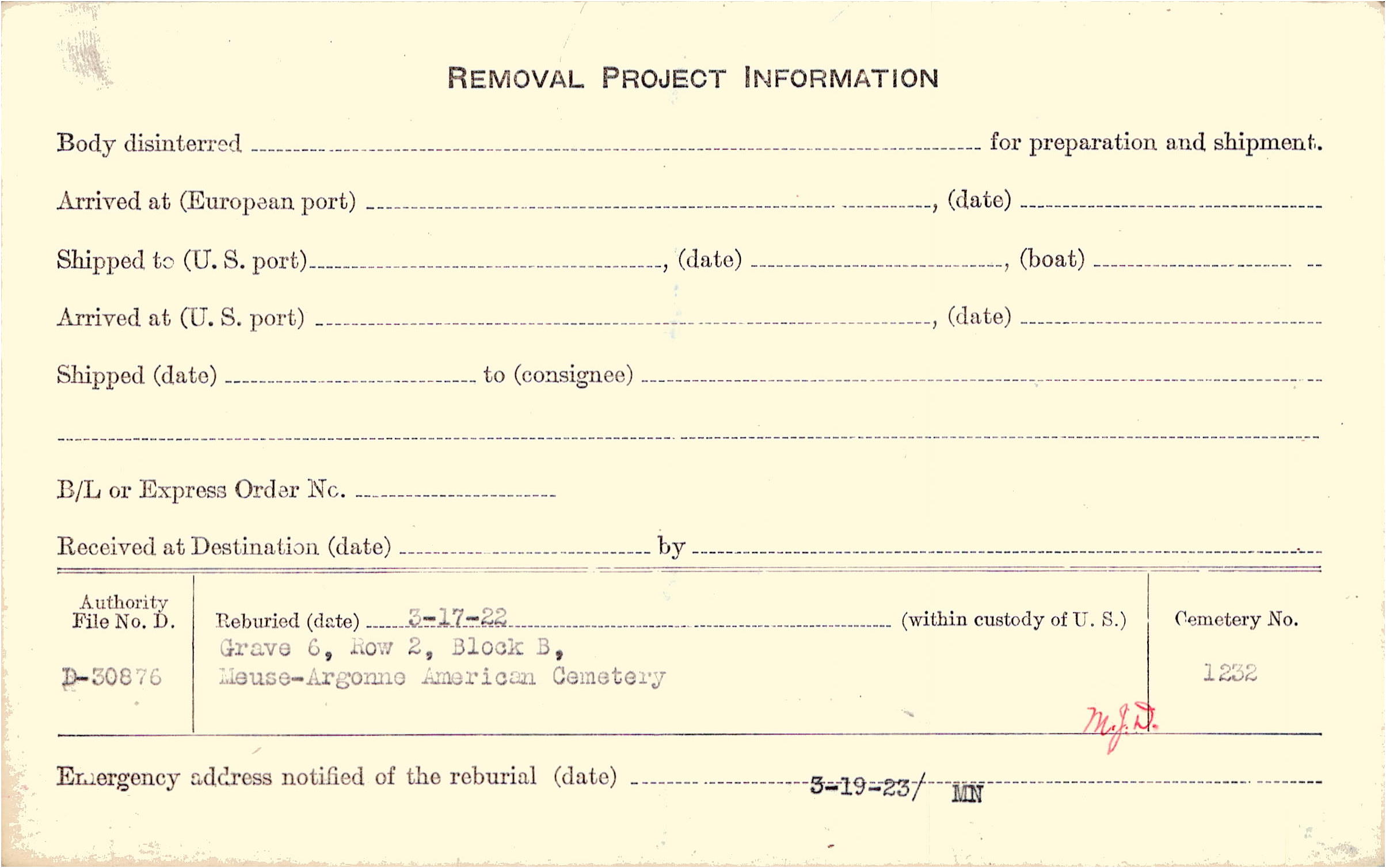 Grave 21, Amer. B/A Cty., Nantillois, Meuse