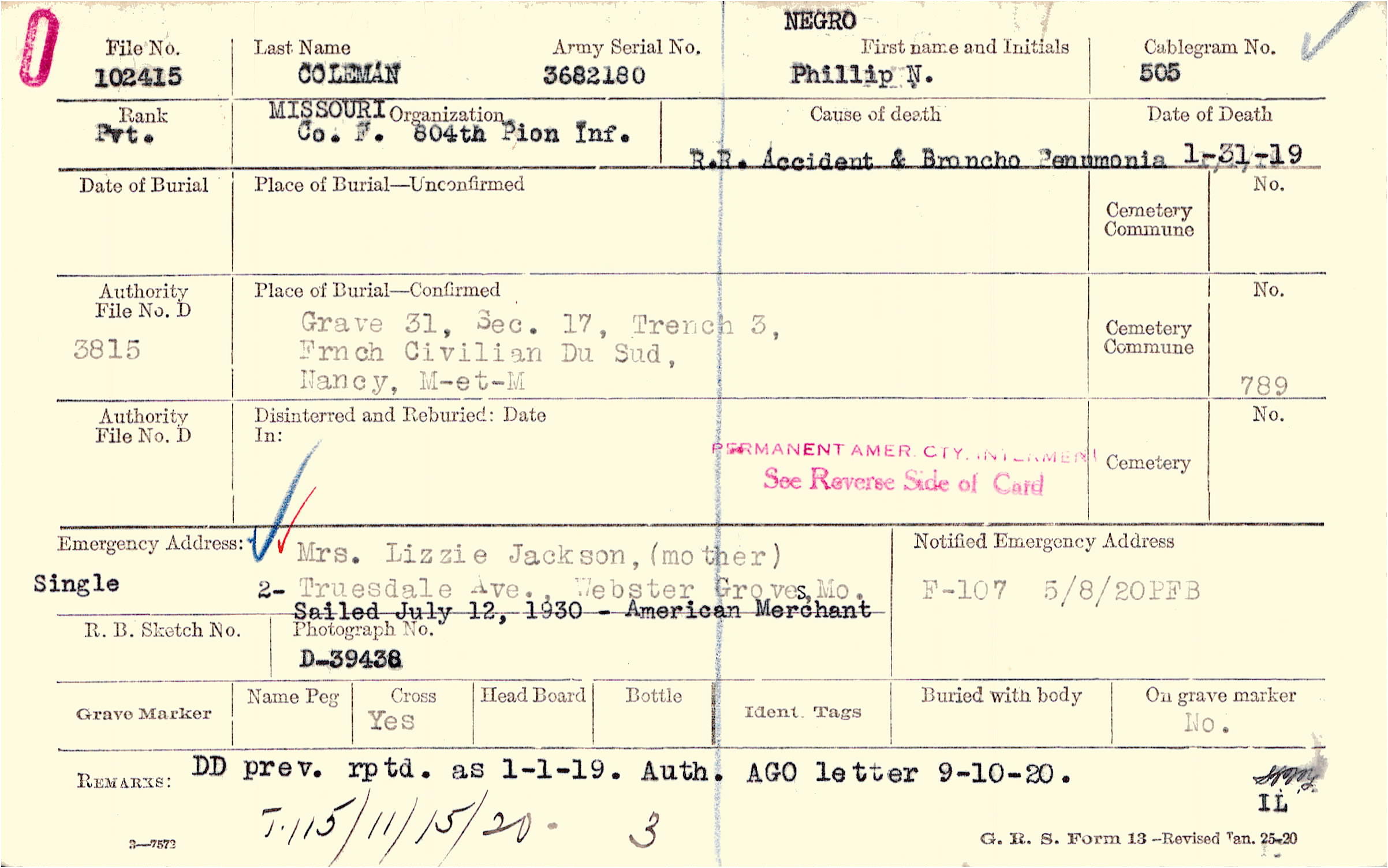 Grave 31, Sec. 17, Trench 3, Frnch Civilian Du Sud, Nancy, M-et-M