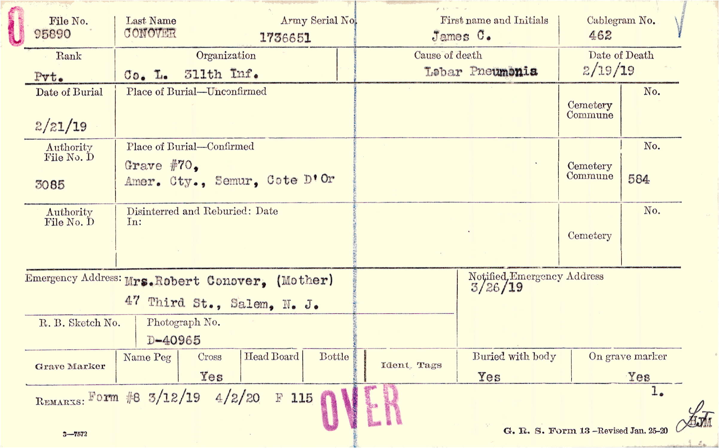 Mrs. Robert Conover, (Mother), 47 Third St., Salem, N.J.