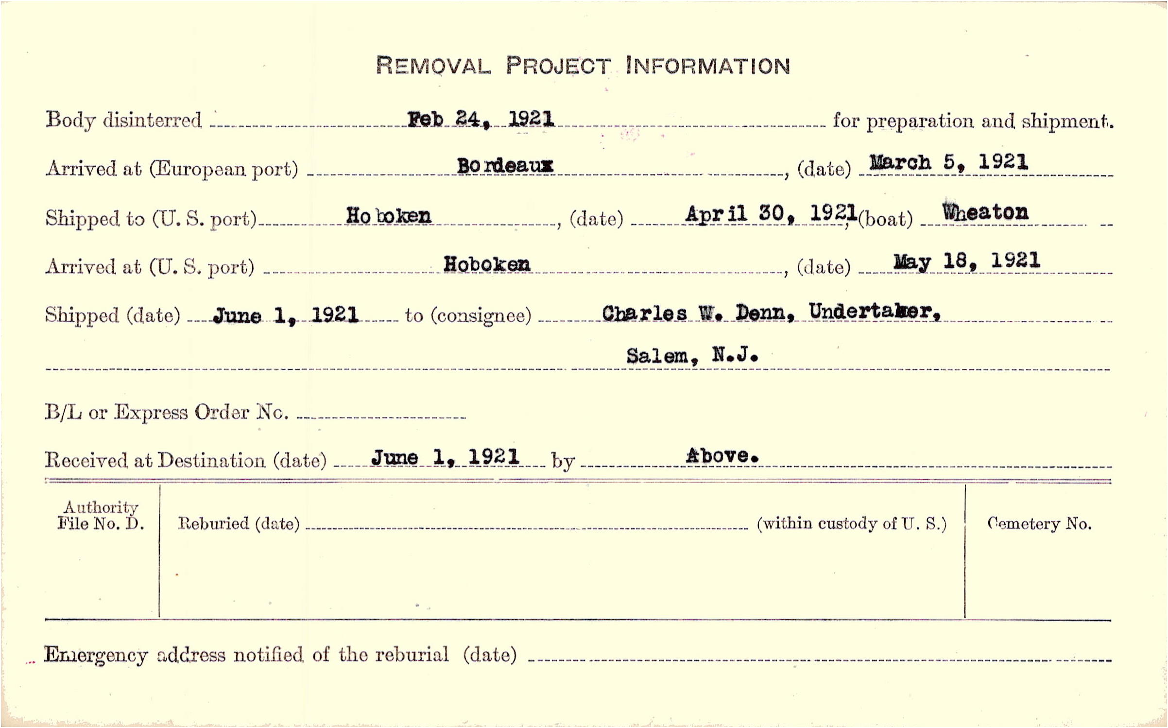 to Charles W. Denn, Undertaker, Salem, N.J.