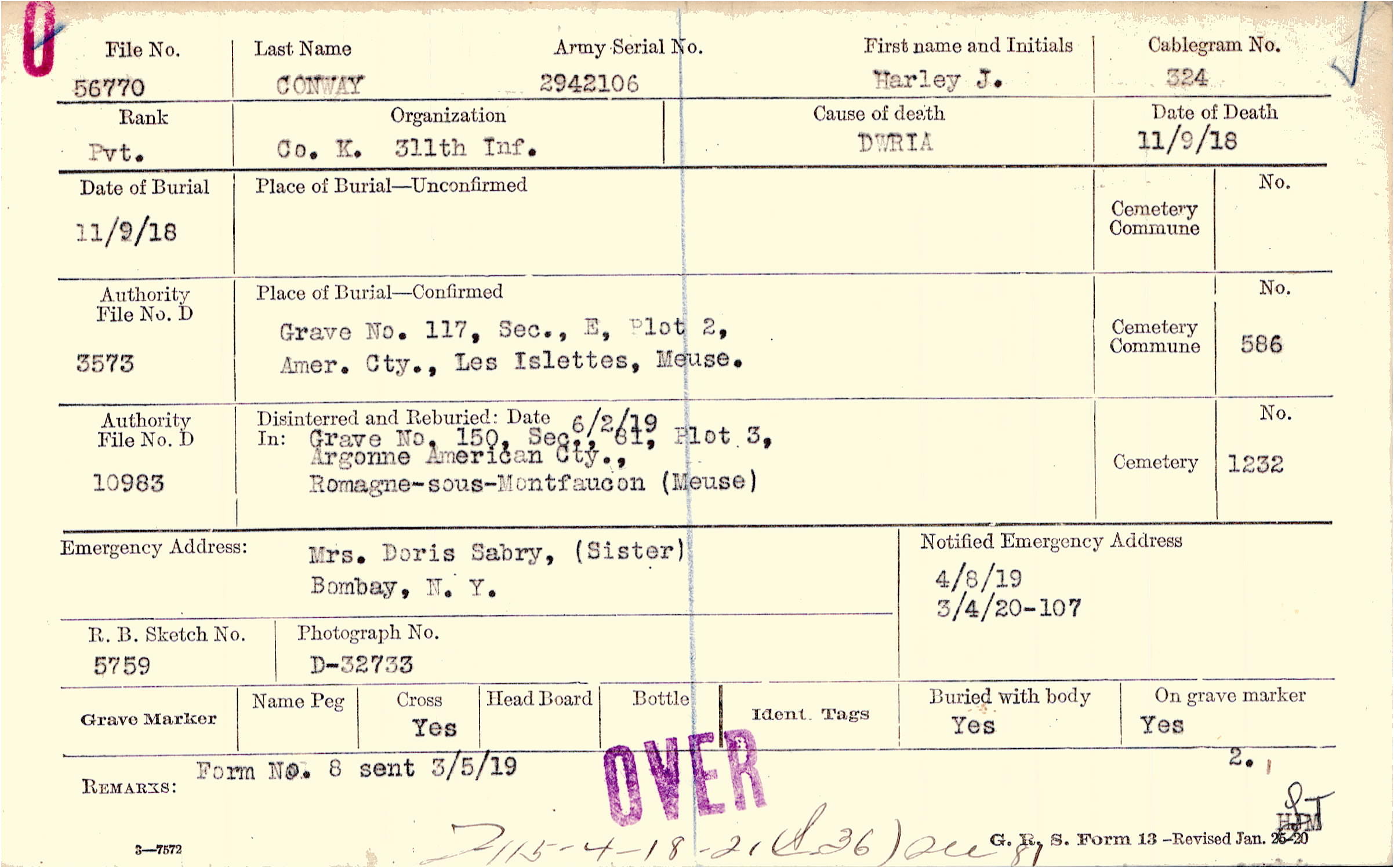 Grave 117, Sec., E, Plot 2,Amer. Cty., Les Islettes, Meuse.