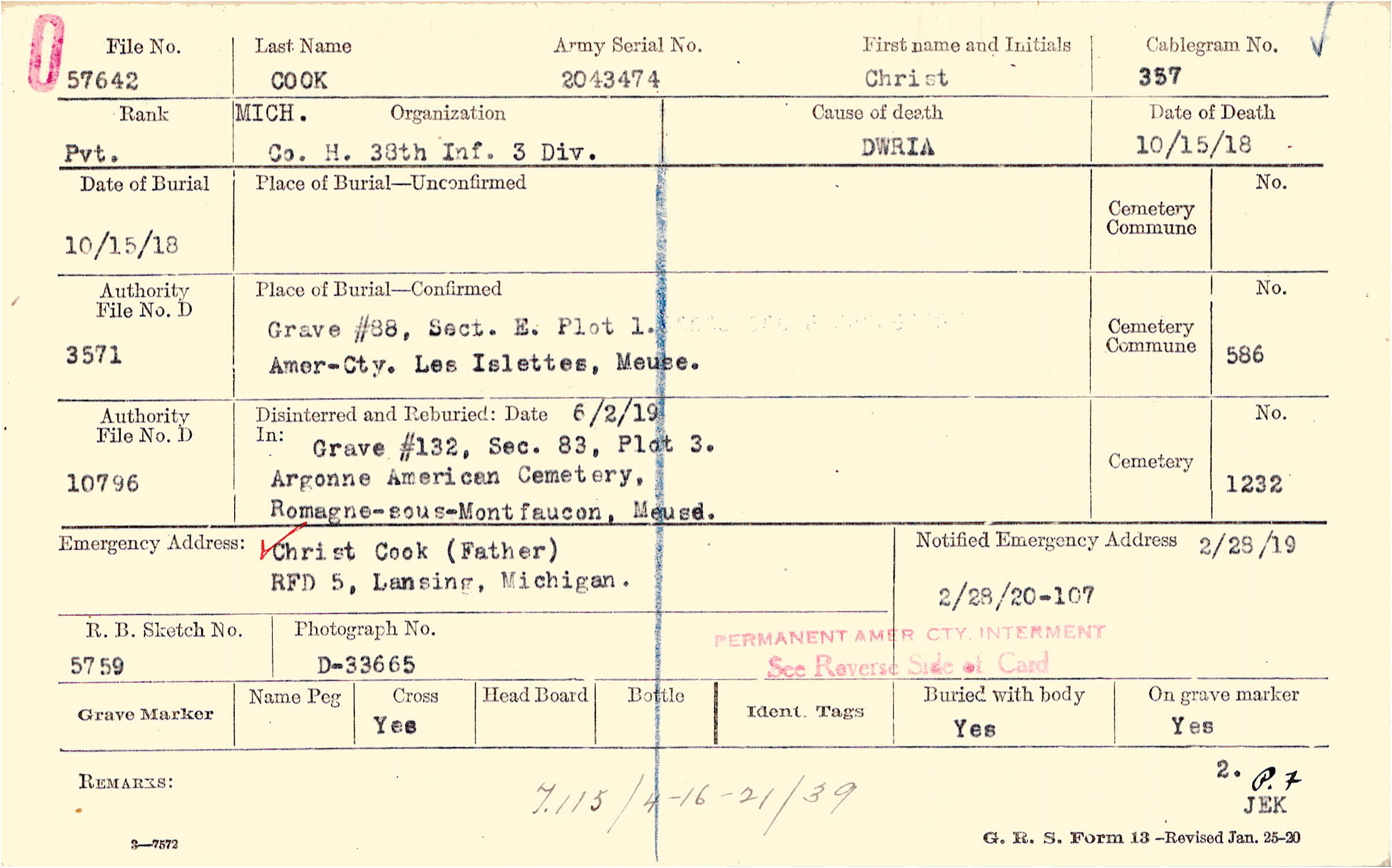 Christ Cook (Father), RFD 5, Lansing, Michigan.