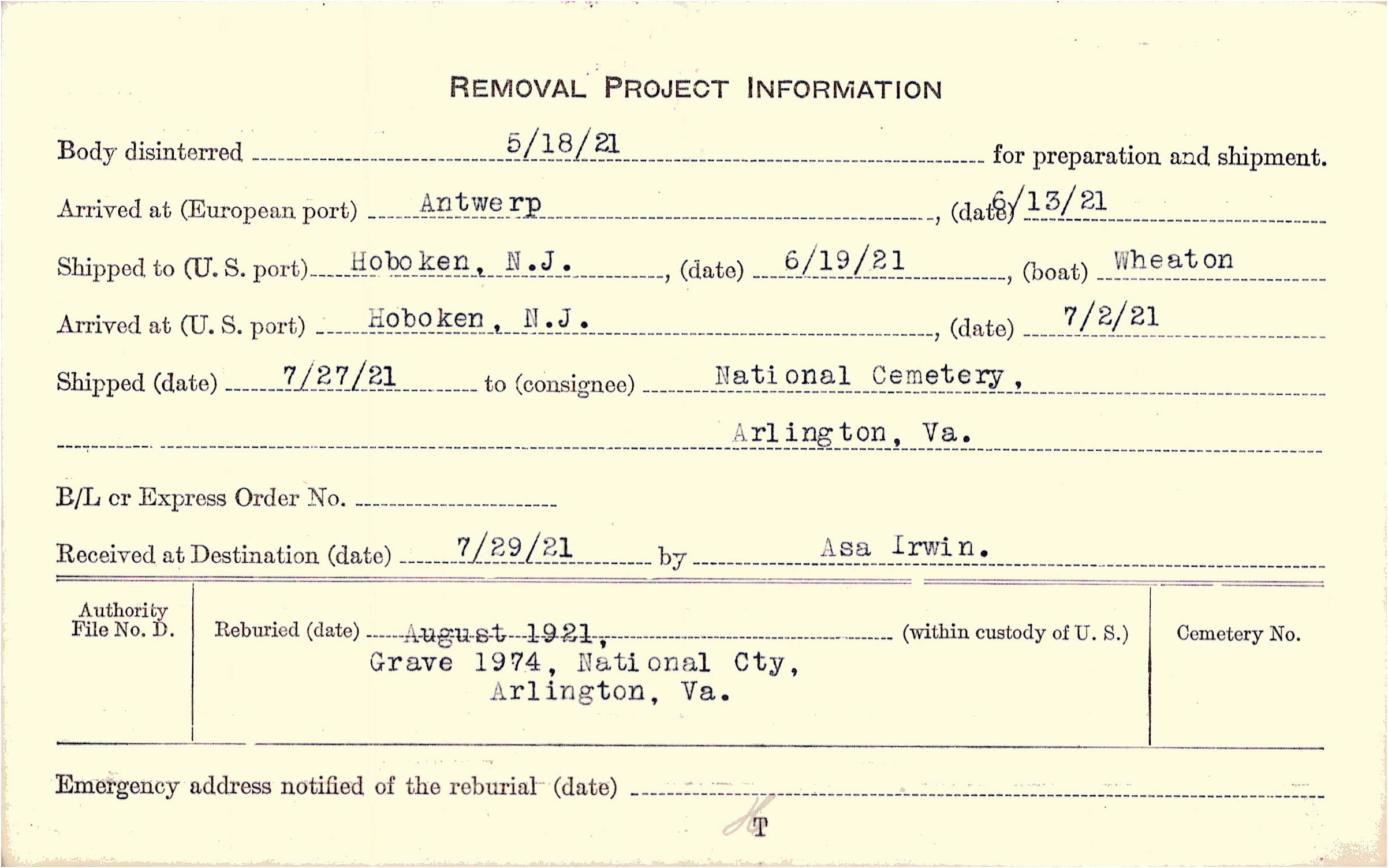 Grave 20, Amer. B/A Cty, Les Pres Farm., Chery Chartreuve, Aisne.