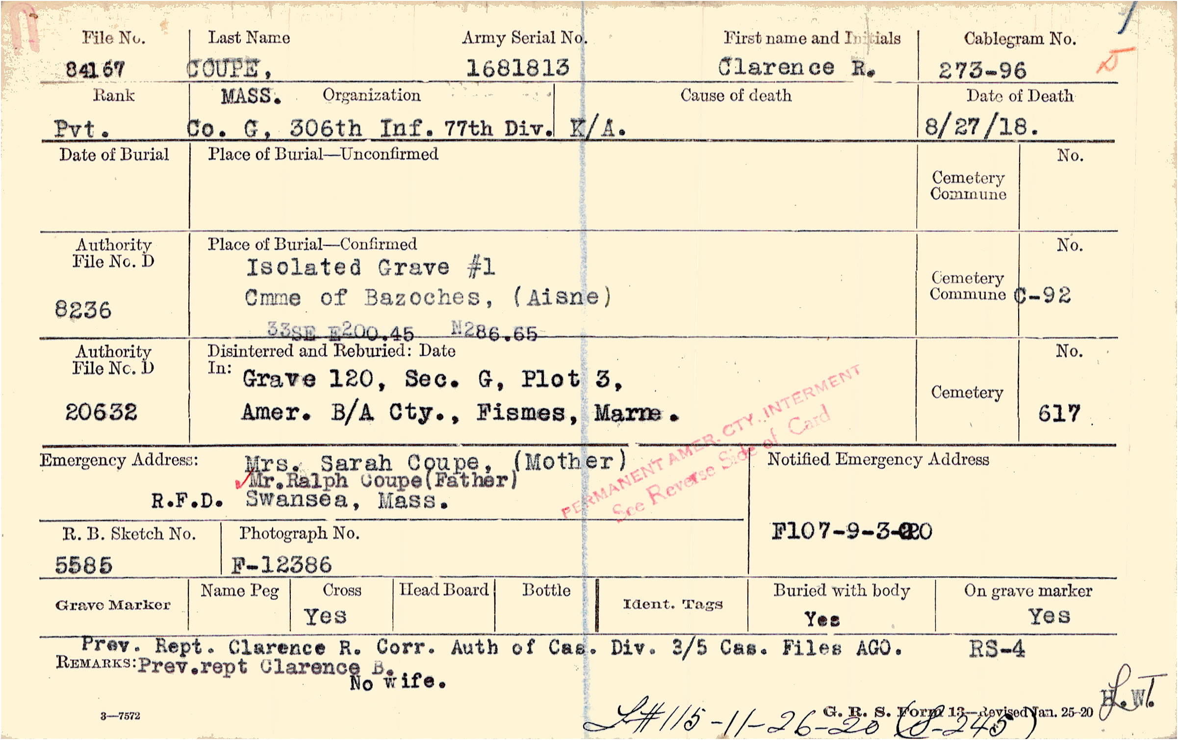 Prev. Rept. Clarence R. Corr. Auth of Cas. Div. 3/5 Cas. Files AGO. RS-4 Prev.rept Clarence B. No wife, F#115 - 11-26-20 (S-245)
