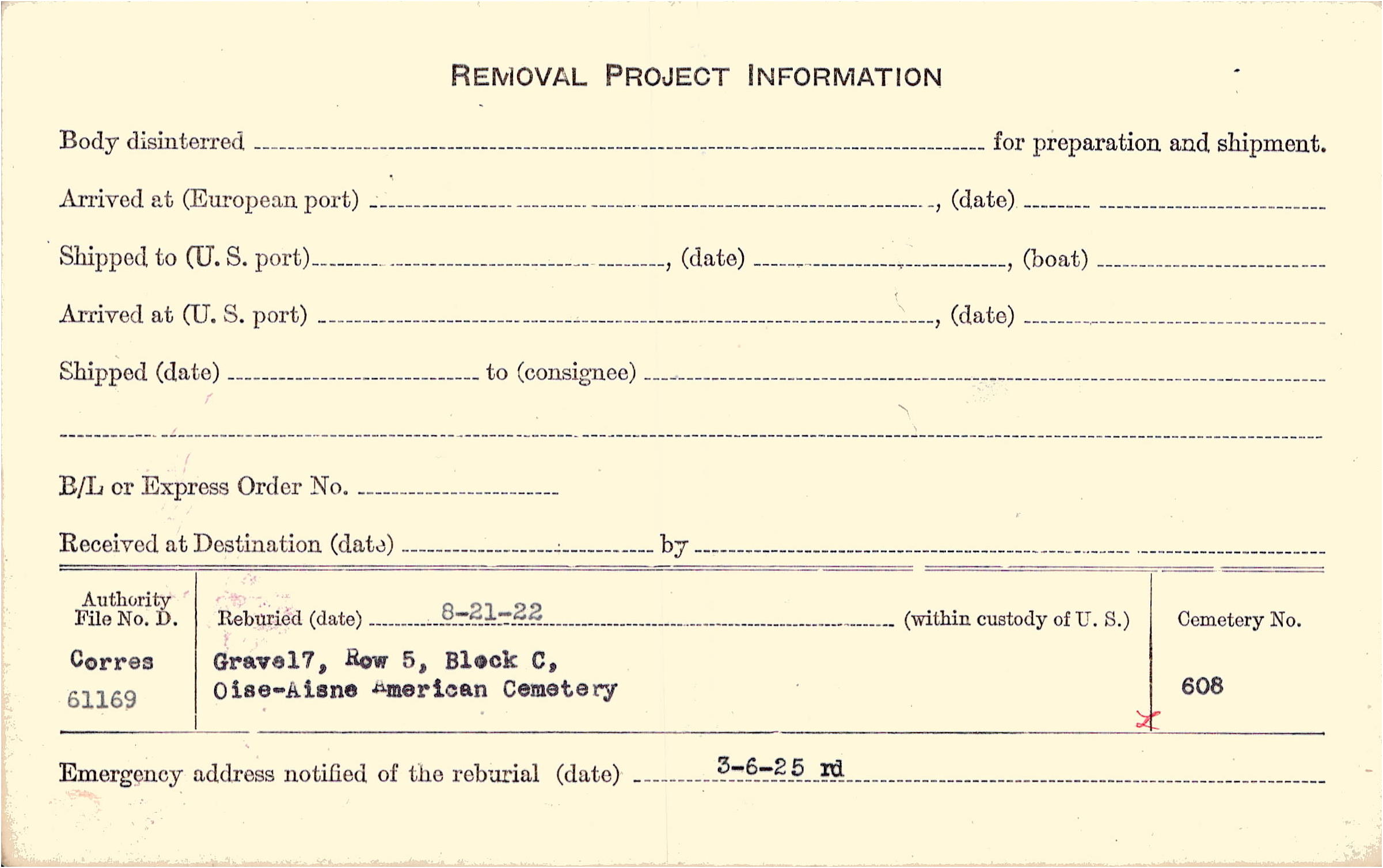 Grave 120, Section G, Plot 3, American B/A Cemetery, Fismes, Marne