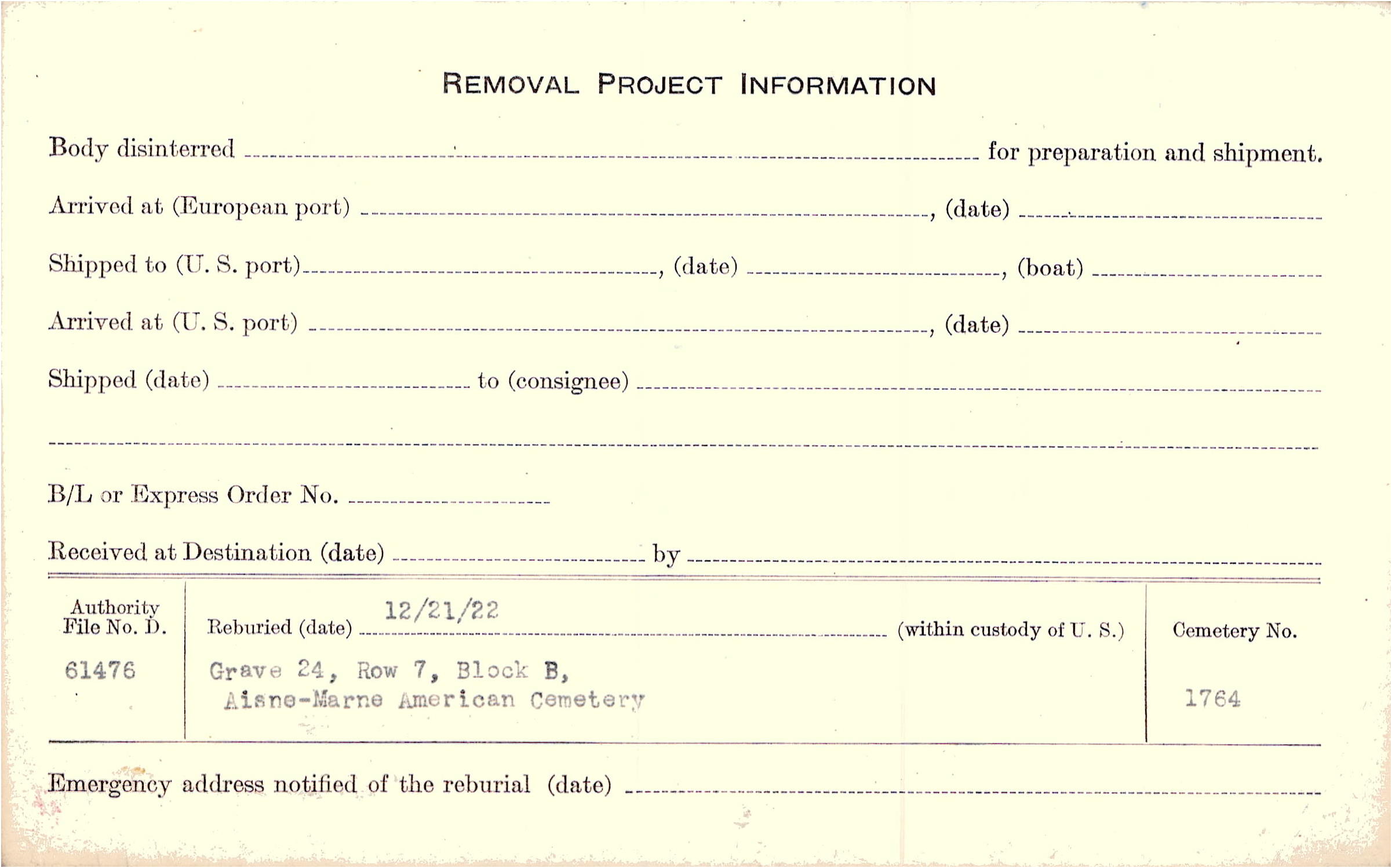 | Permanent Burial in Foreign Cemetery |