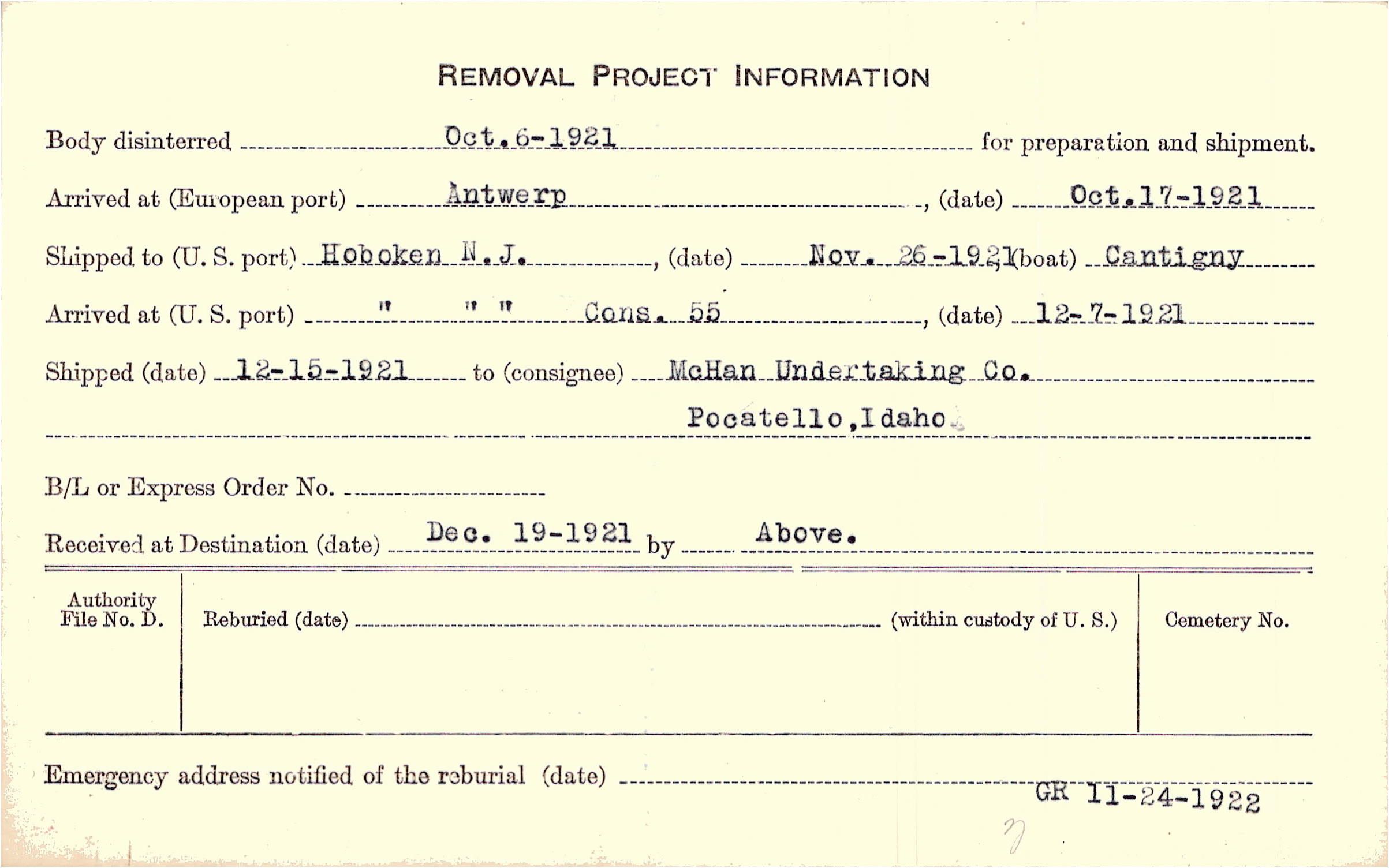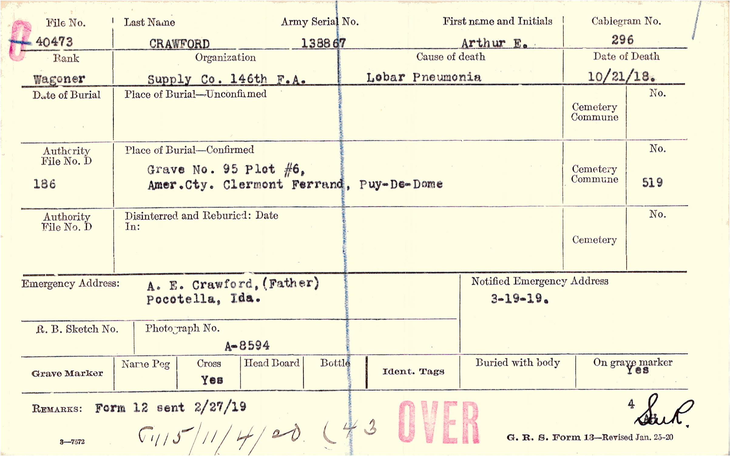 Grave no. 95, Plot #6, Amer. Cty., Clermont Ferrand, Puy-De-Dome