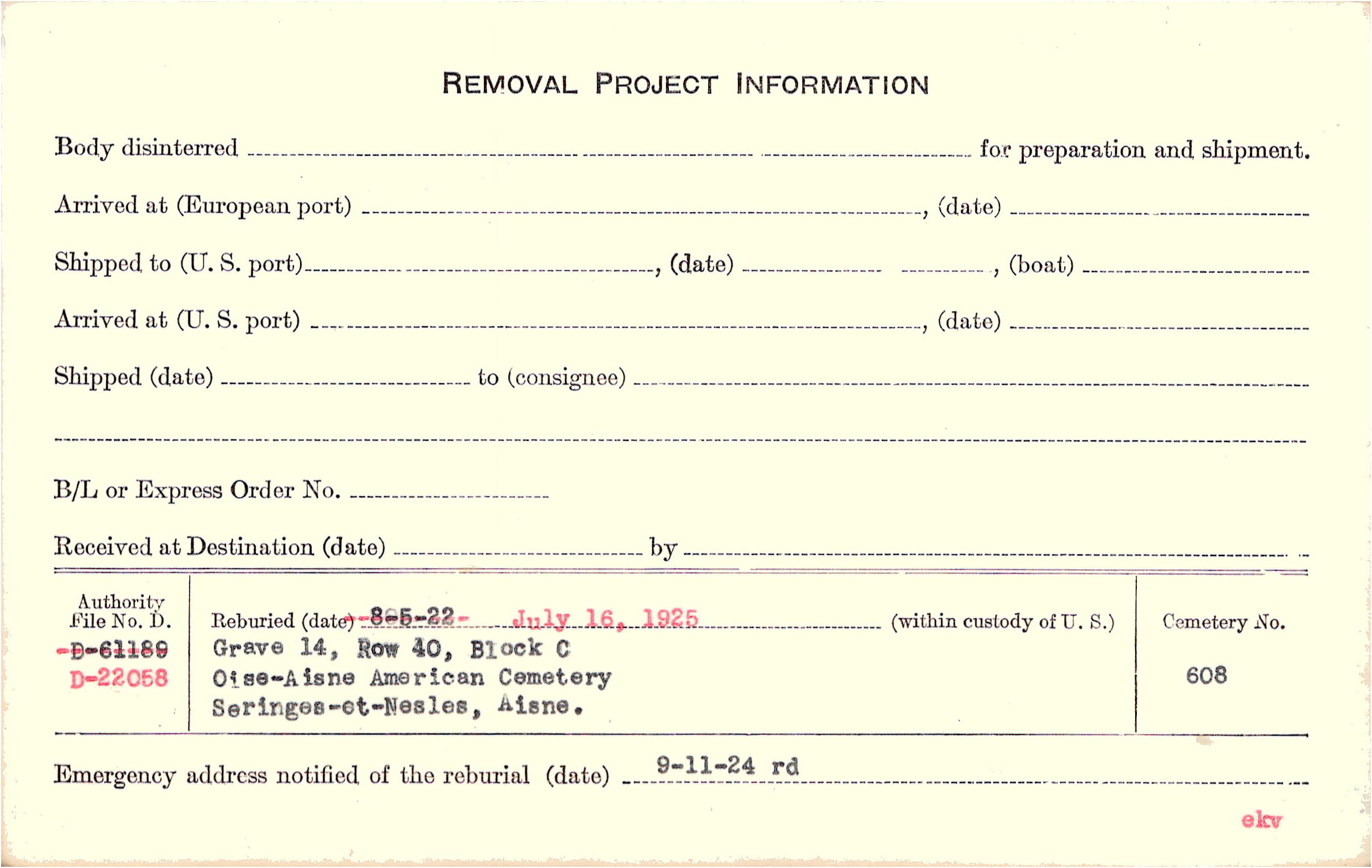 | Reburied (date): |