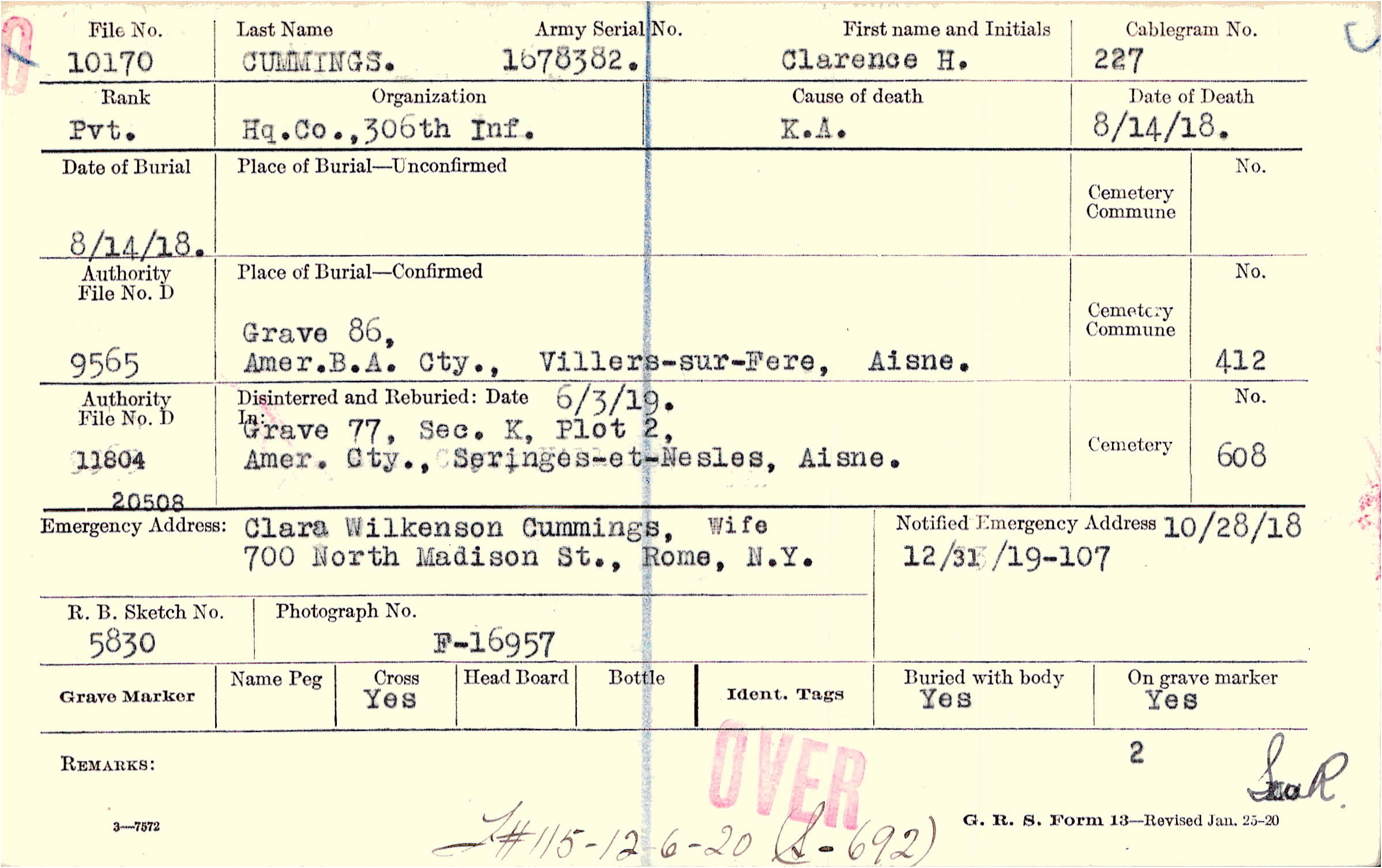 Grave 86, Amer. B/A Cty., Villers-sur-Fere, Aisne