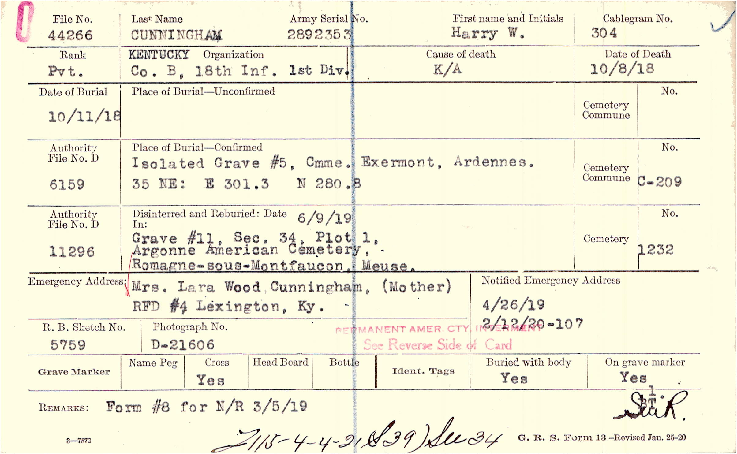 Isolated Grave #5, Cmme. Exermont, Ardennes, 35 NE