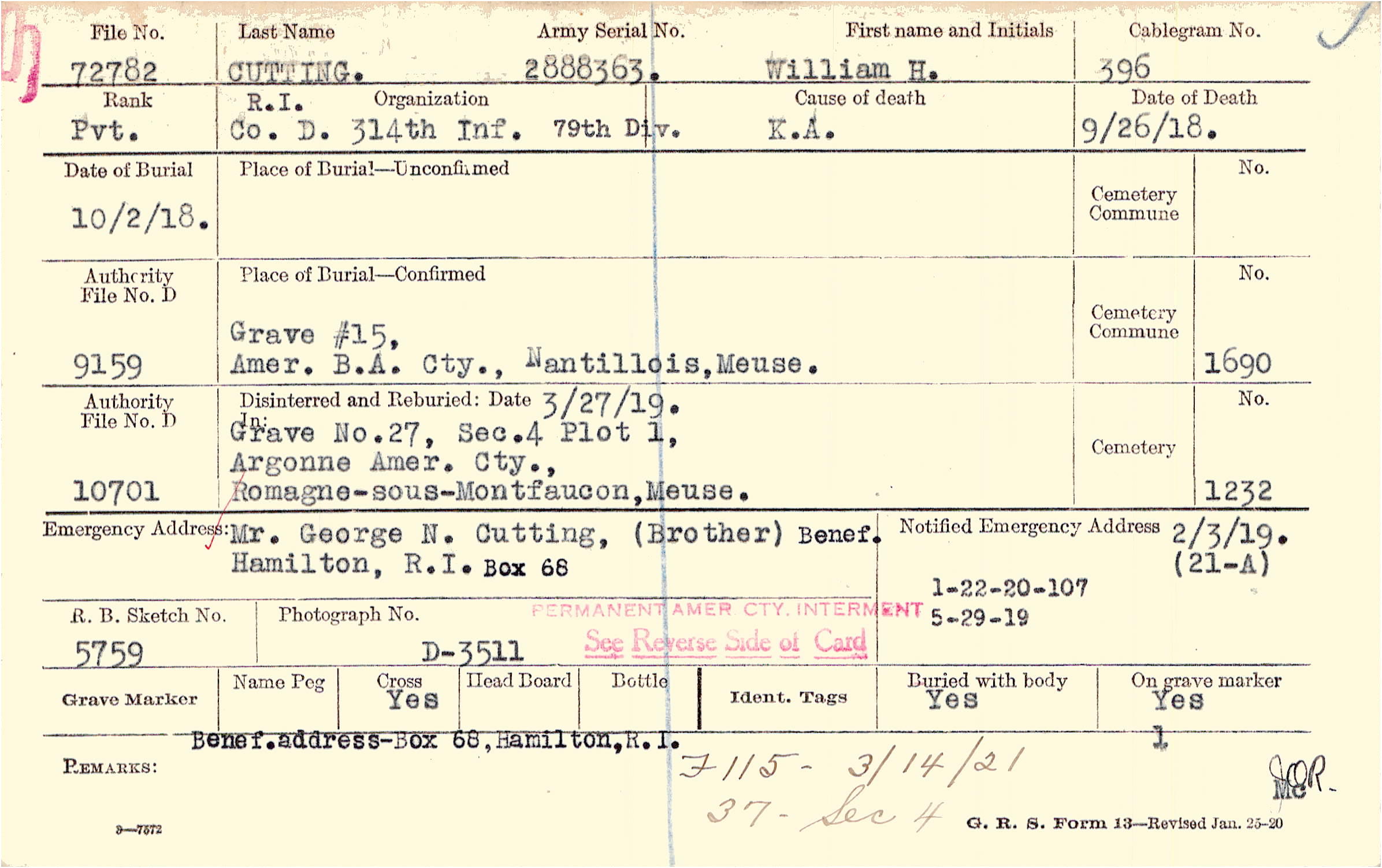 Mr. George N. Cutting, (Brother), Hamilton, R. I. Box 68, Benef. Box 68