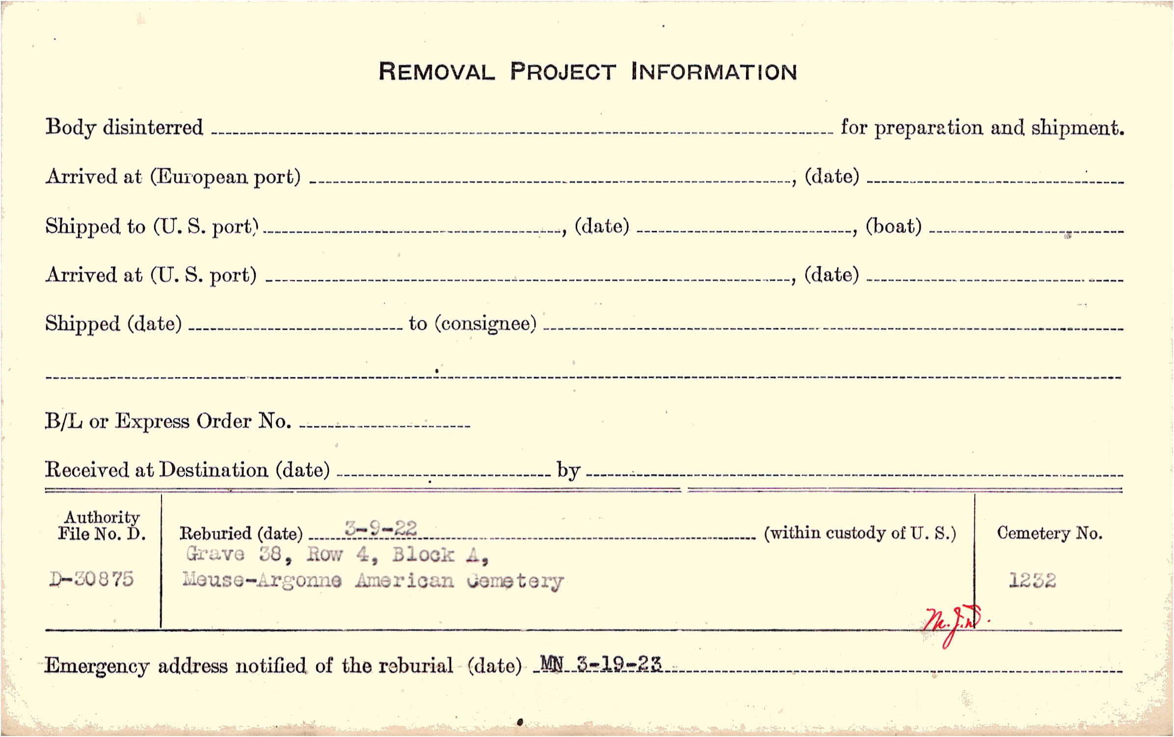 | Permanent Burial in Foreign Cemetery |