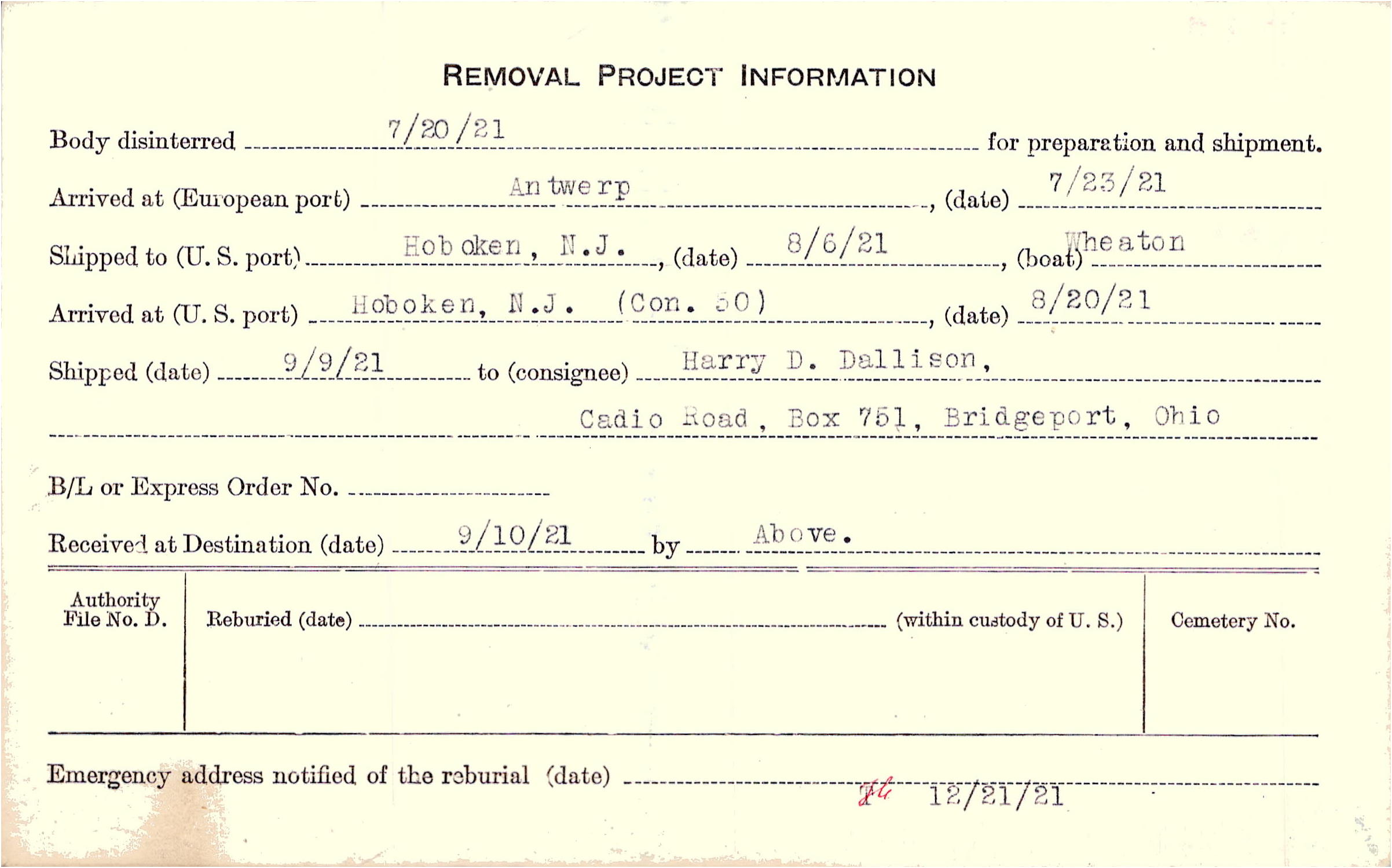 Harry D. Dallison, Brother, Bridgeport, Ohio.