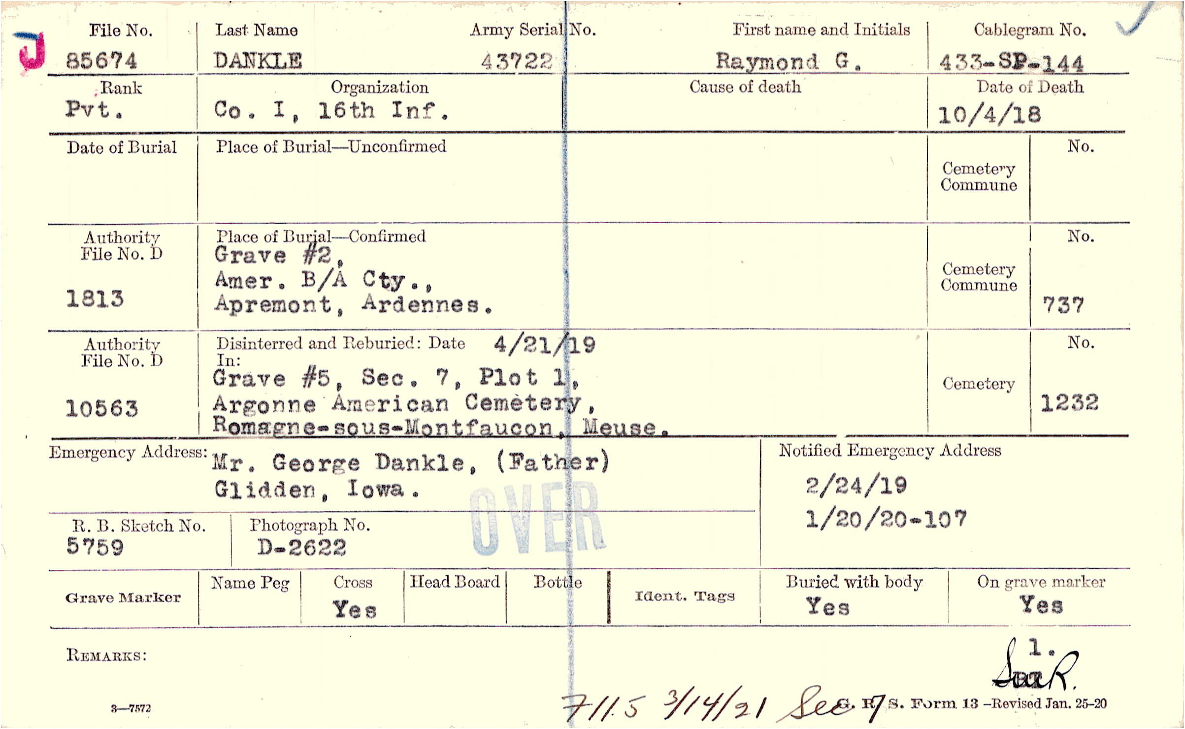 Grave #2, Amer. B/A Cty., Apremont, Ardennes.