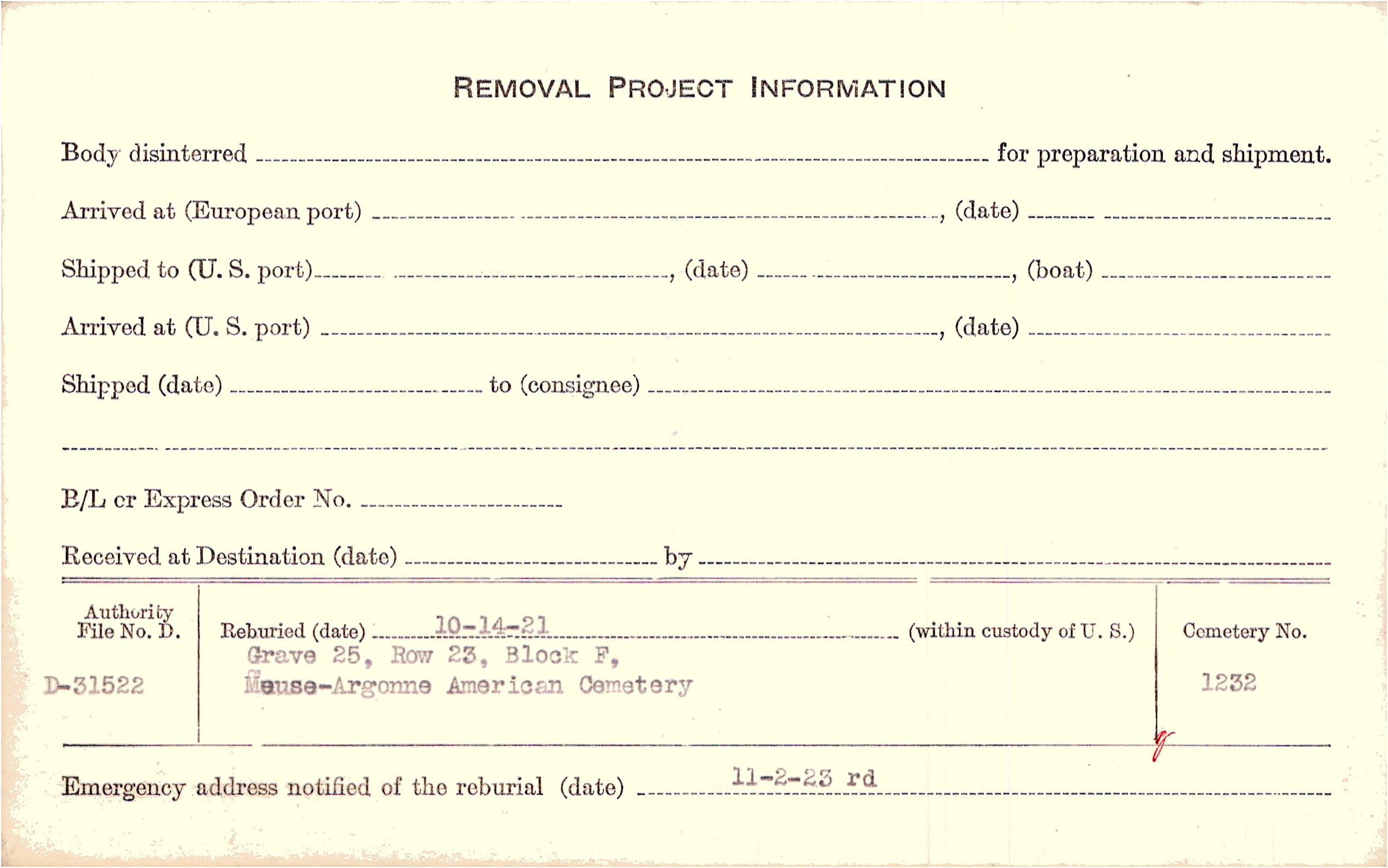 | Permanent Burial in Foreign Cemetery |