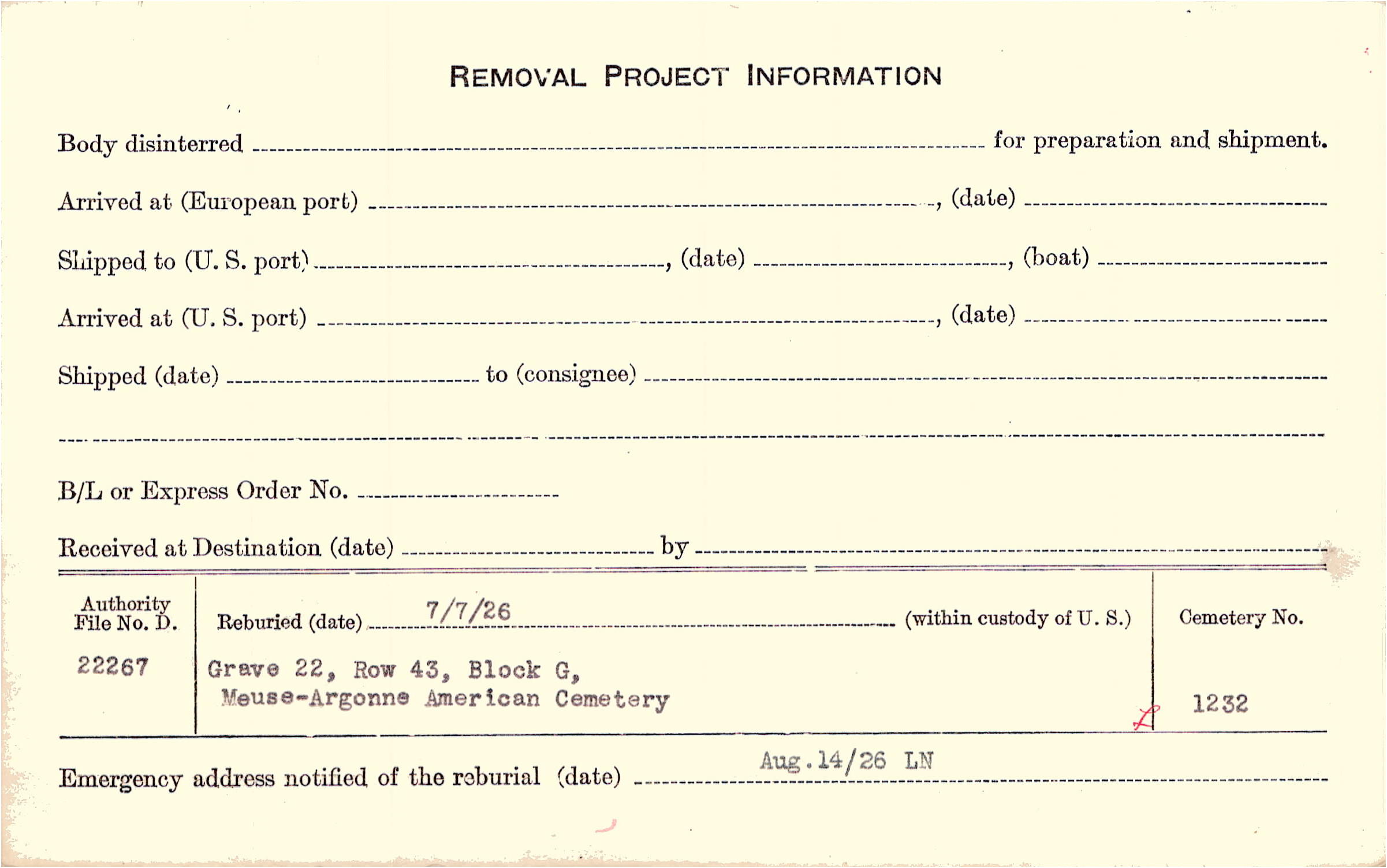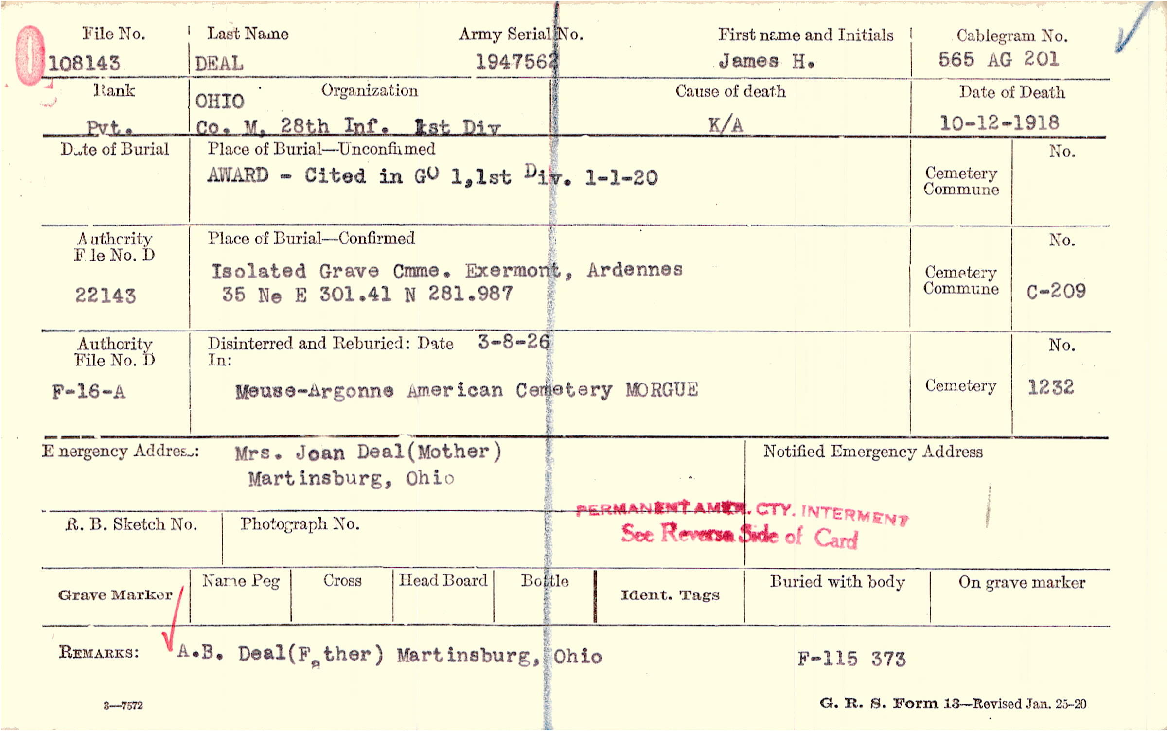 | Permanent Burial in Foreign Cemetery |