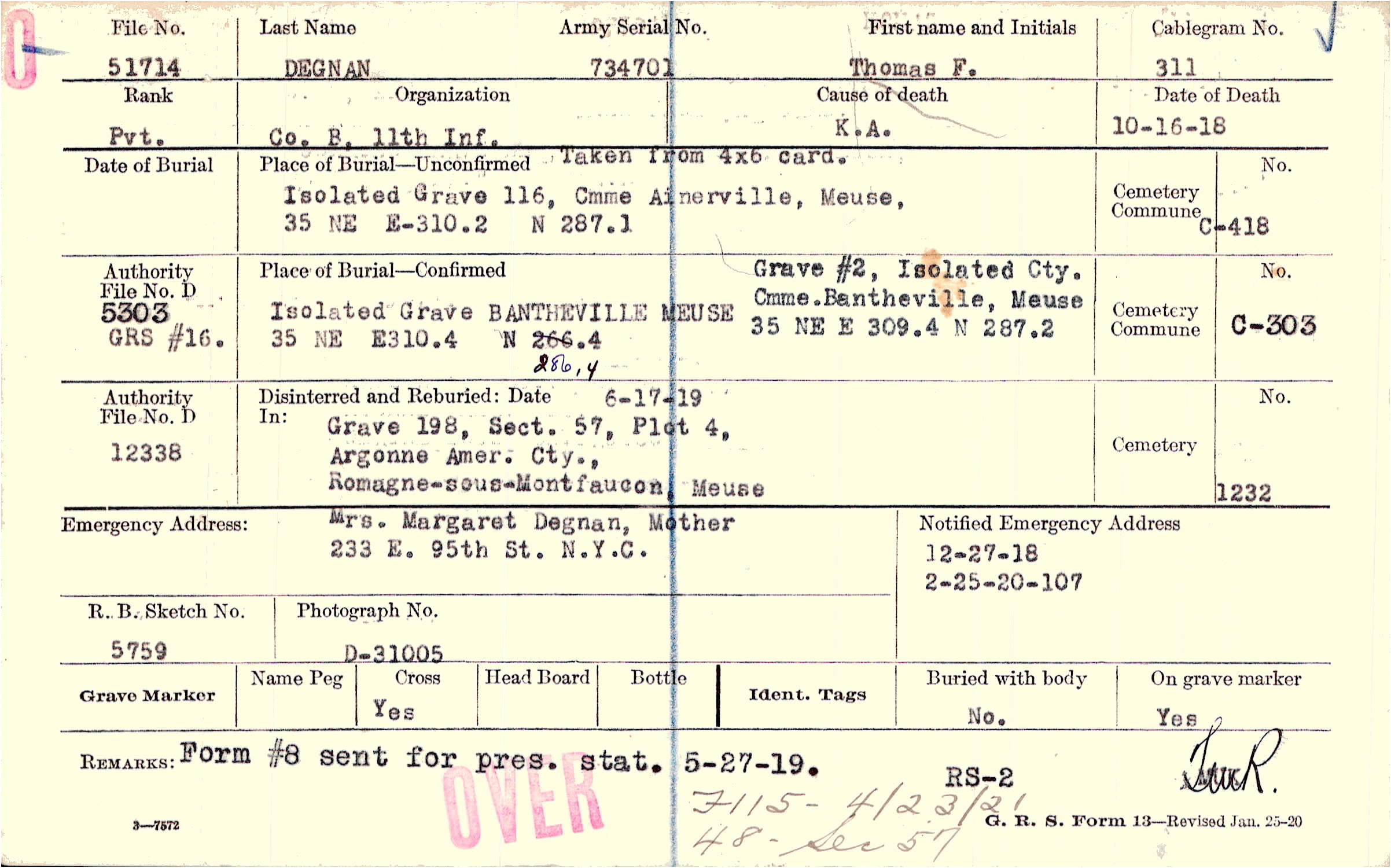 Mrs. Margaret Degnan, Mother, 233 E. 95th St. N.Y.C.