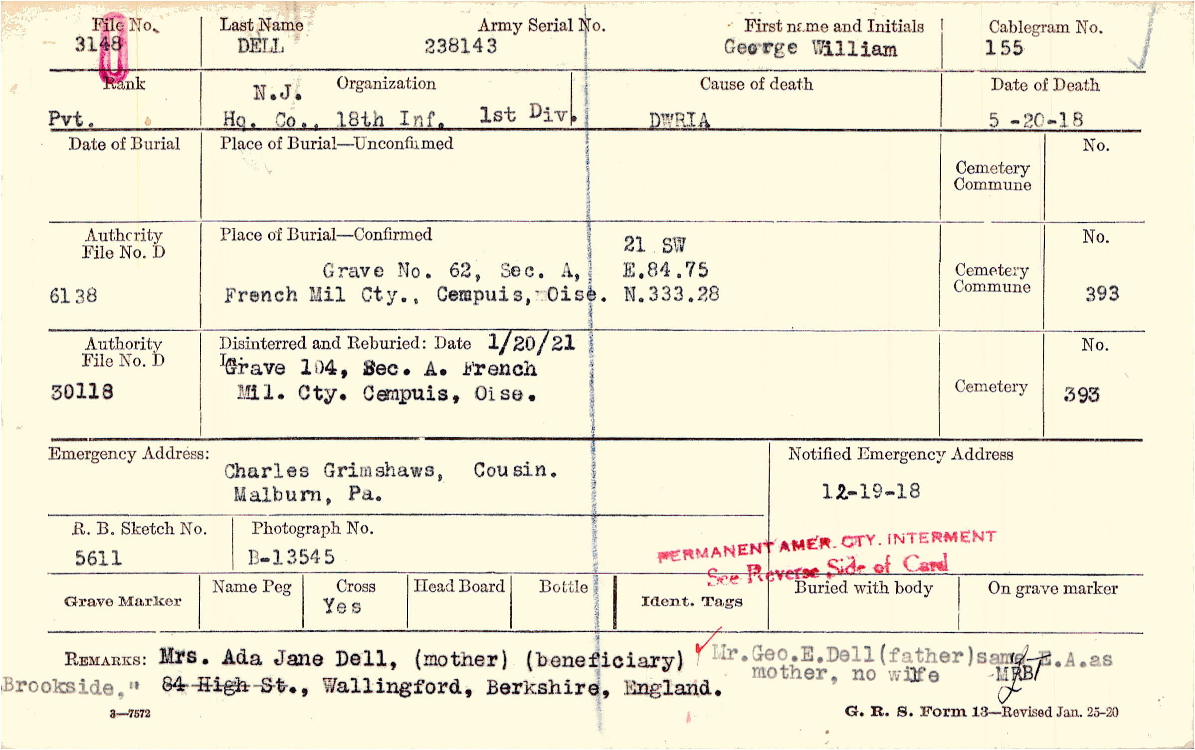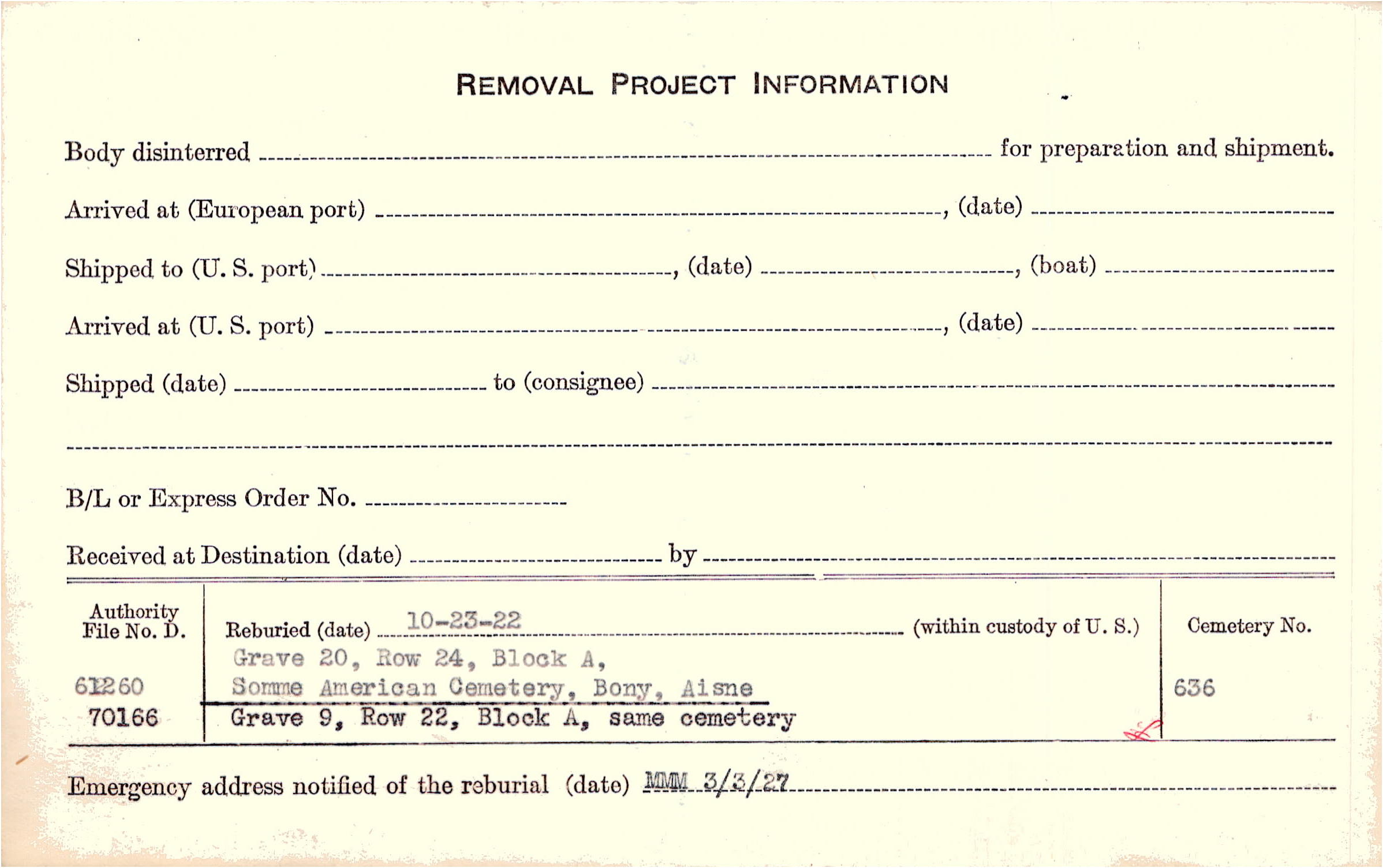 Grave 62, Sec. A, French Mil Cty., Cempuis, Oise, 21 SW