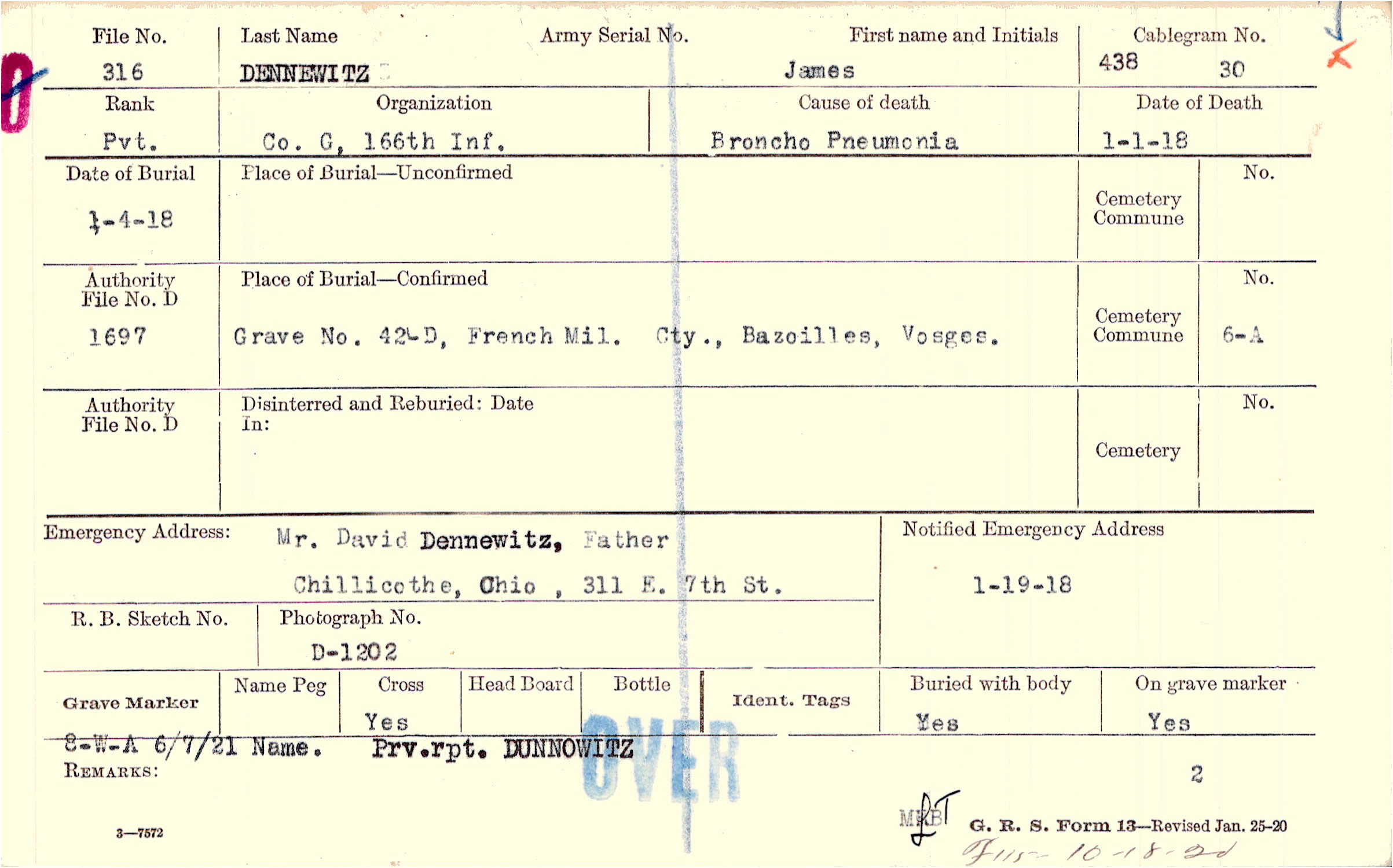 Grave 42-D, French Mil. Cty., Bazoilles, Vosges.
