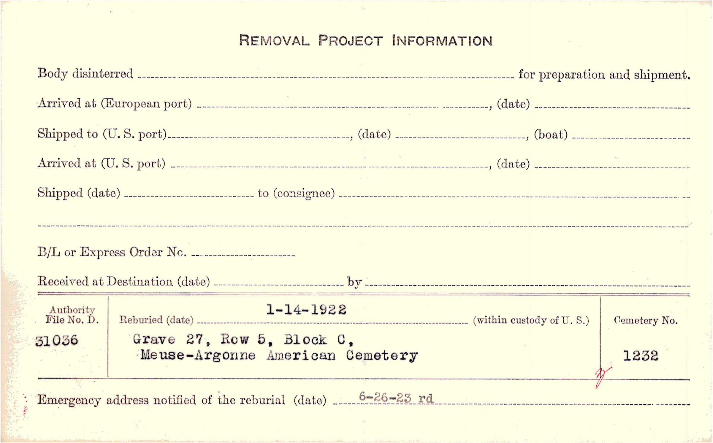 | Permanent Burial in Foreign Cemetery |