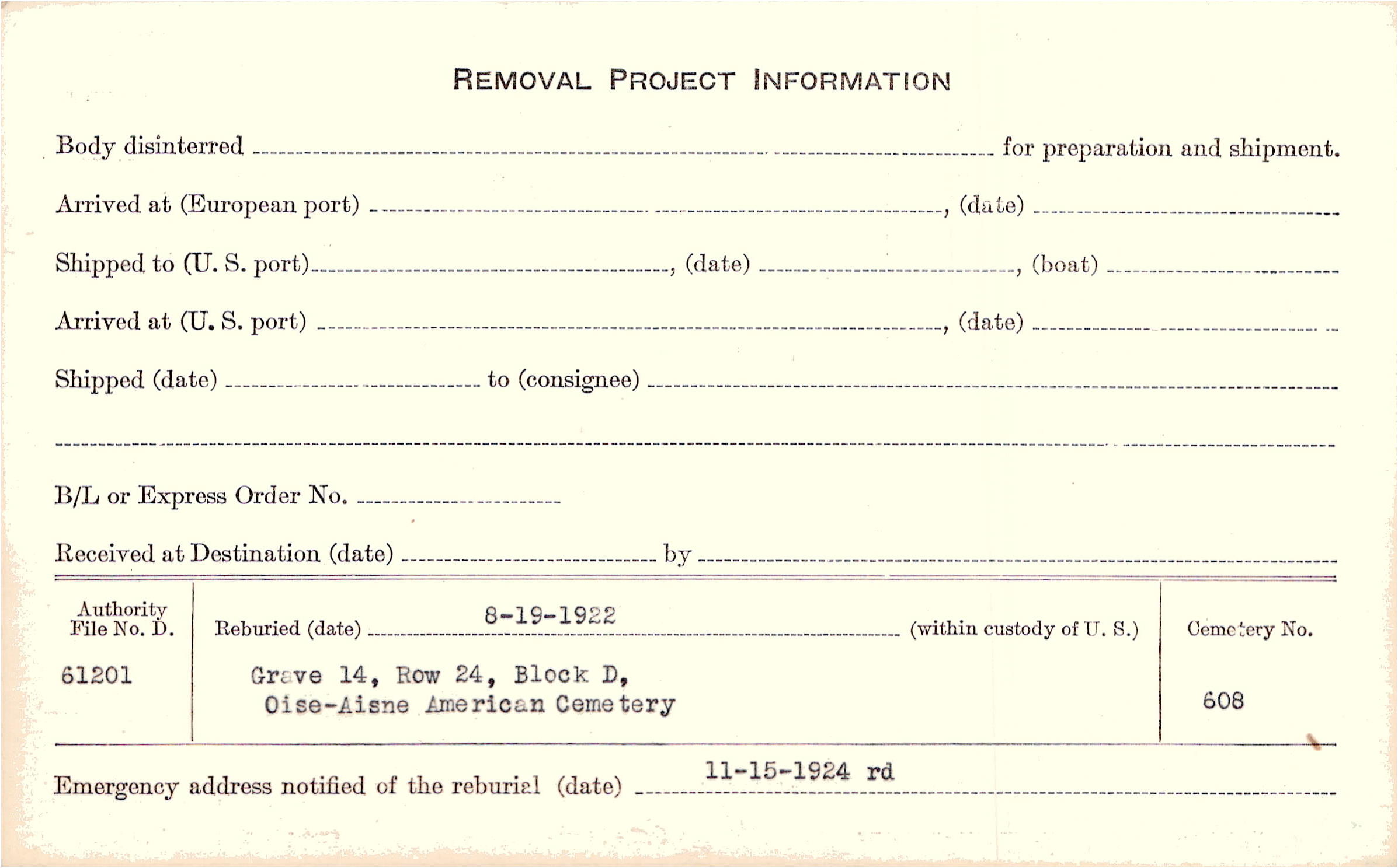 | Permanent Burial in Foreign Cemetery |
