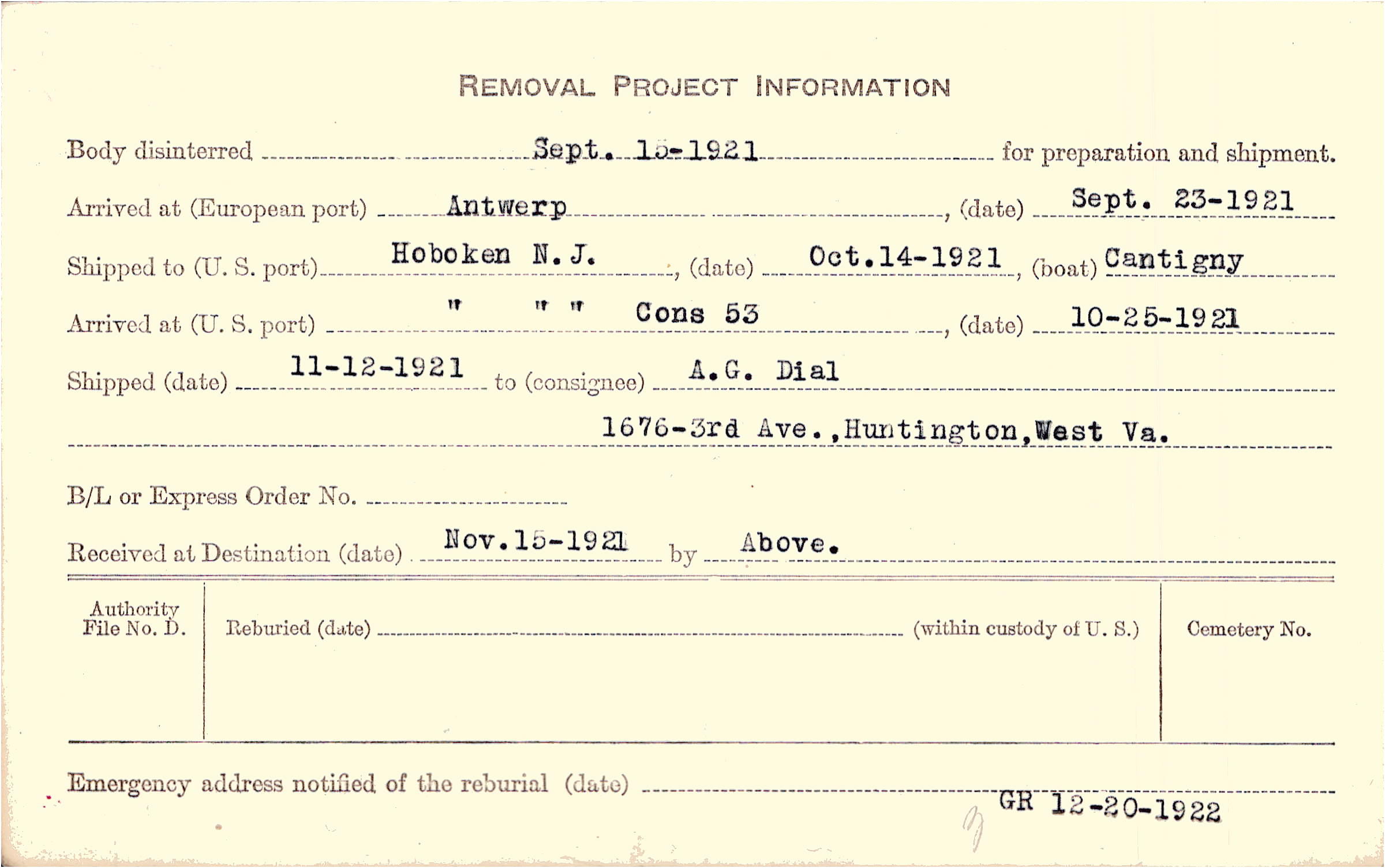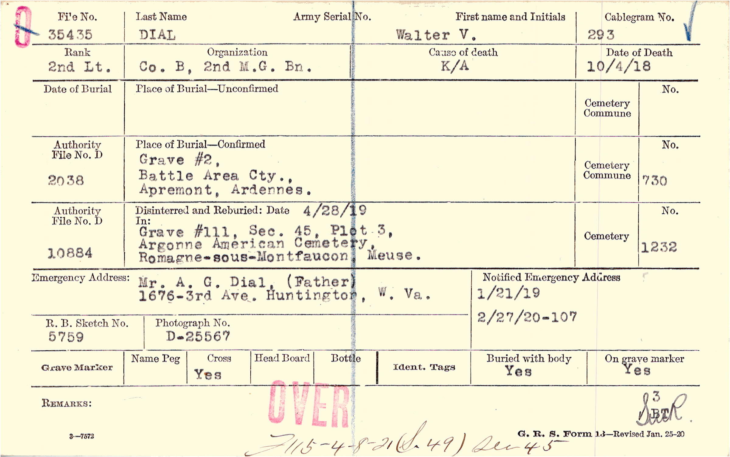 Mr. A. G. Dial, (Father), 1676-3rd Ave. Huntington, W. Va.