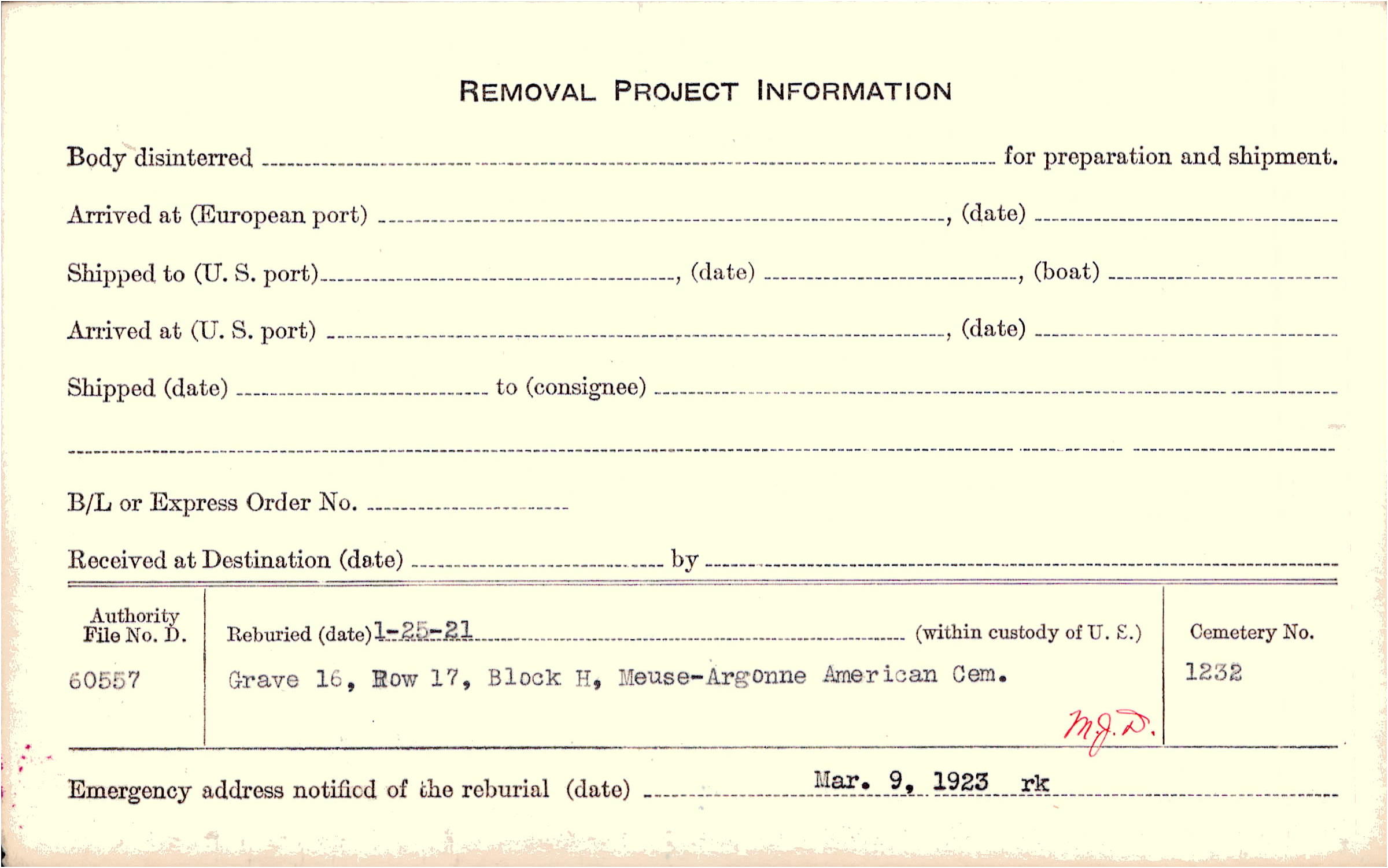 | Permanent Burial in Foreign Cemetery |