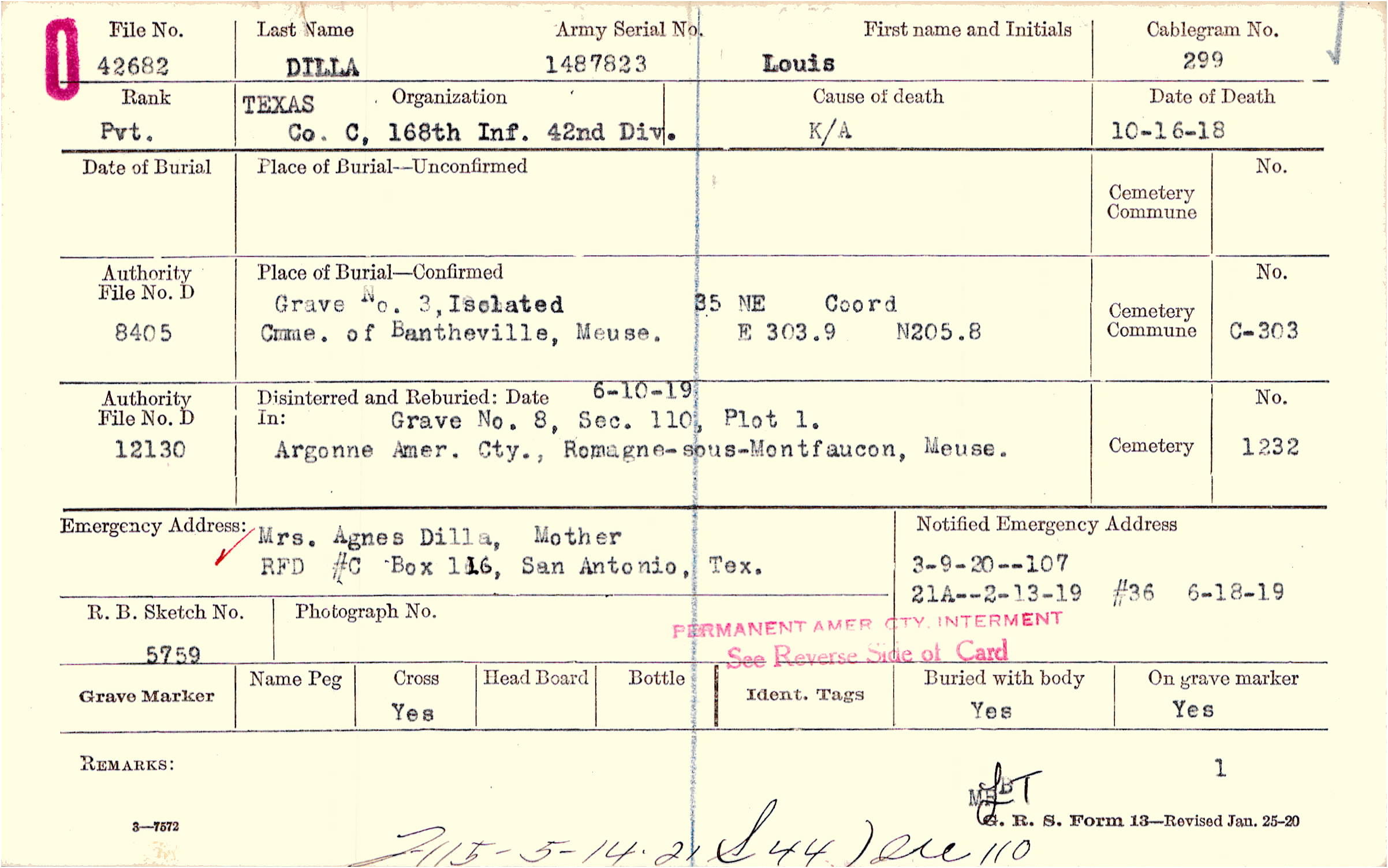 Mrs. Agnes Dilla, Mother, RFD #C Box 116, San Antonio, Tex.