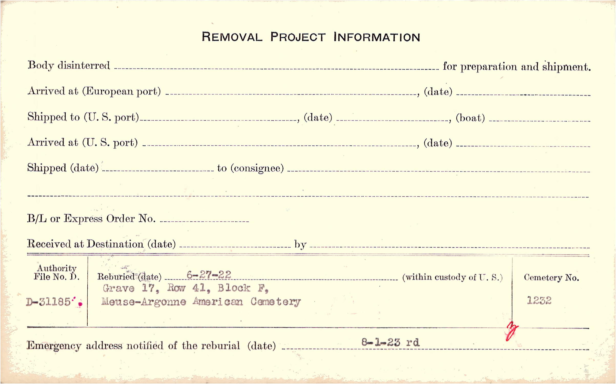 | Permanent Burial in Foreign Cemetery |