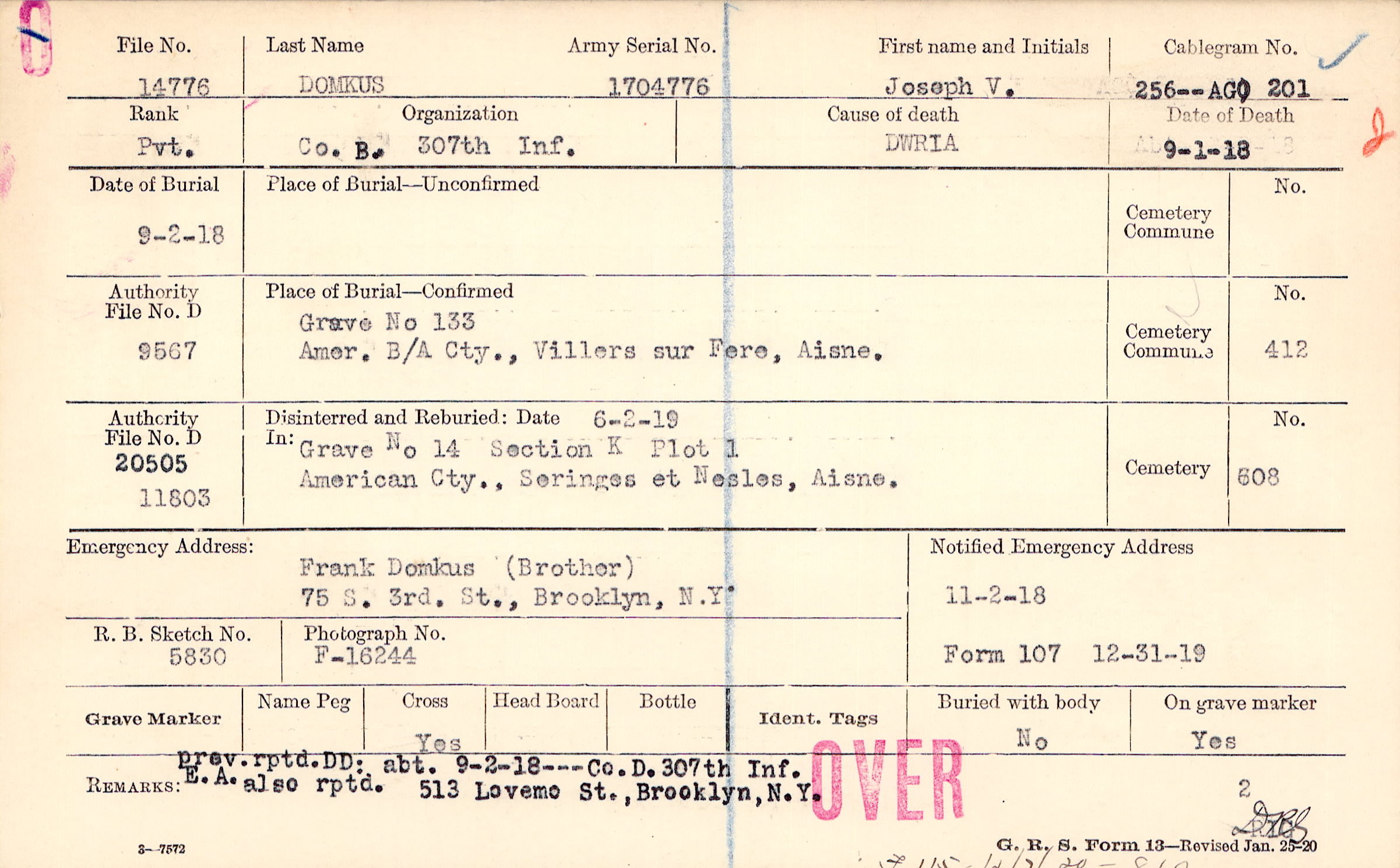 Frank Domkus (Brother), 75 s. 3rd. St., Brooklyn, N.Y..