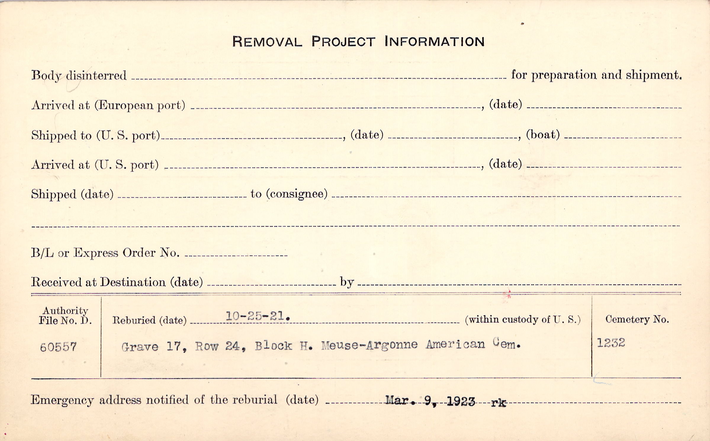 Grave #18, Plot B, Row #1, ,Amer. Military, Brizeaux, Meuse.