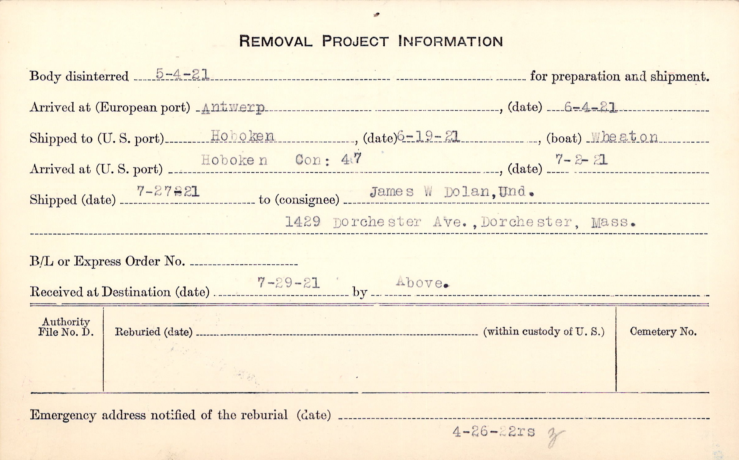 to James W Doland, Und., 1429 Dorchester Ave., Dorchester, Mass.