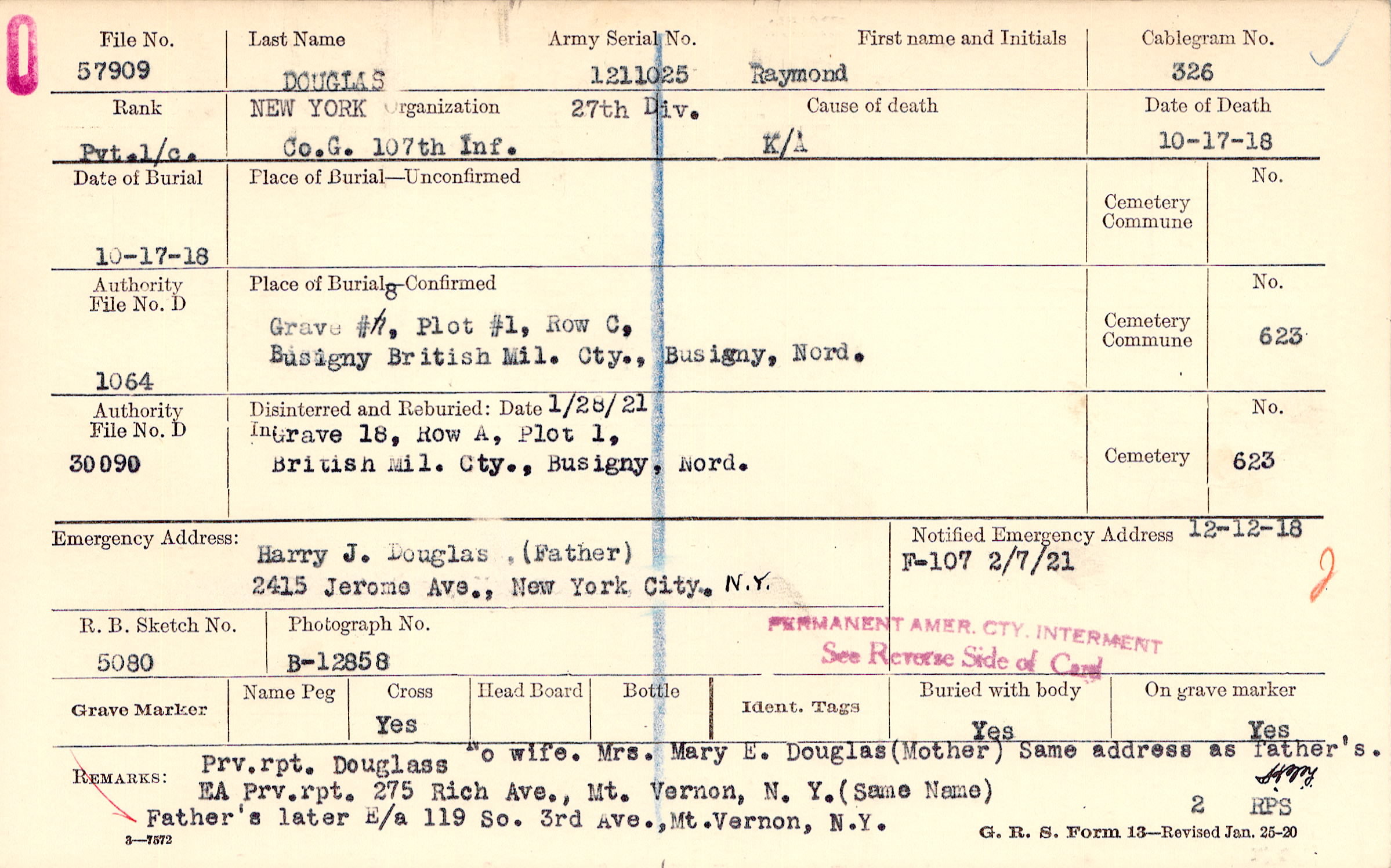 Harry J. Douglas, (Father), 2415 Jerome Ave., New York City, N.Y.