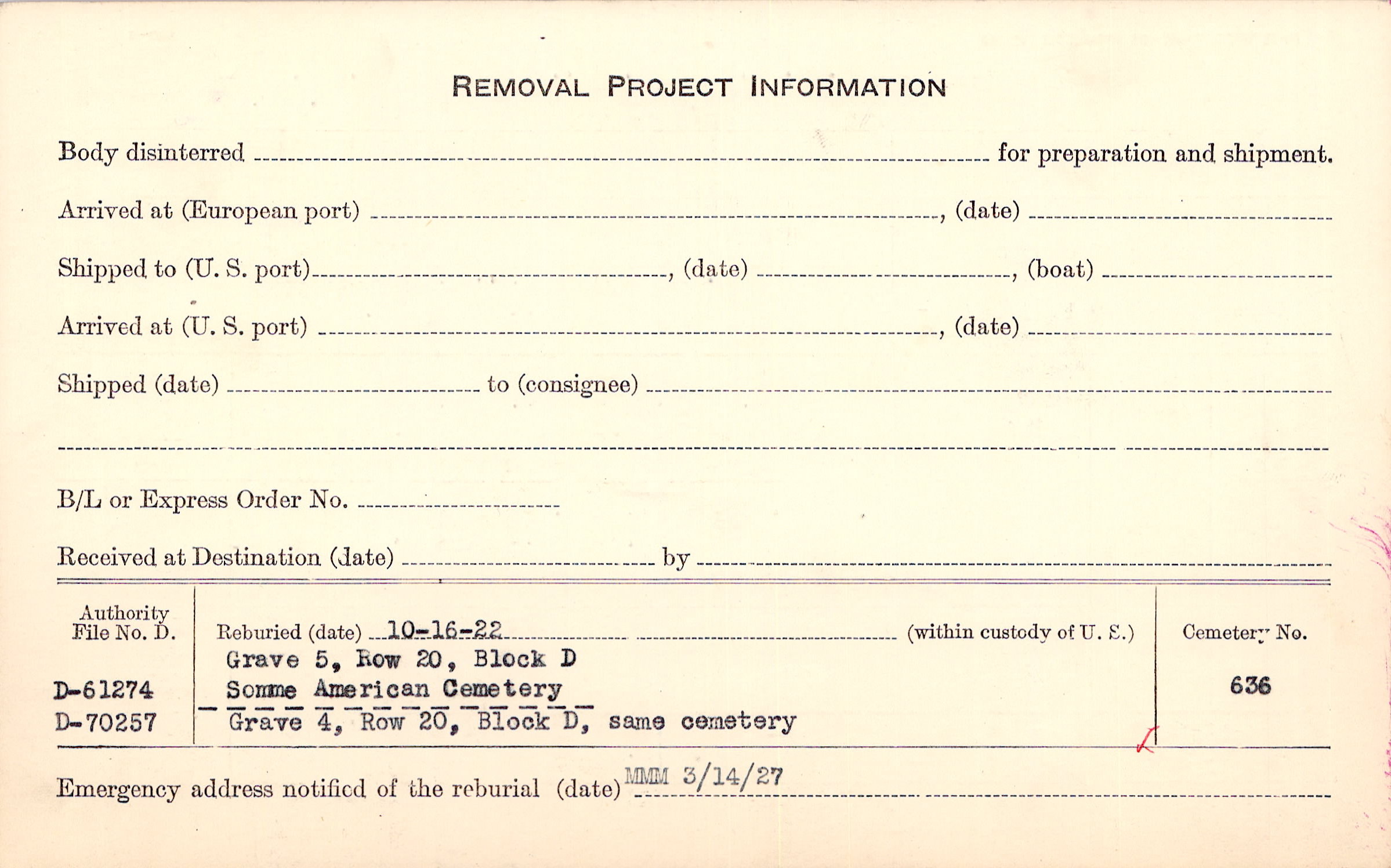 Prior Burial in Foreign Cemetery |