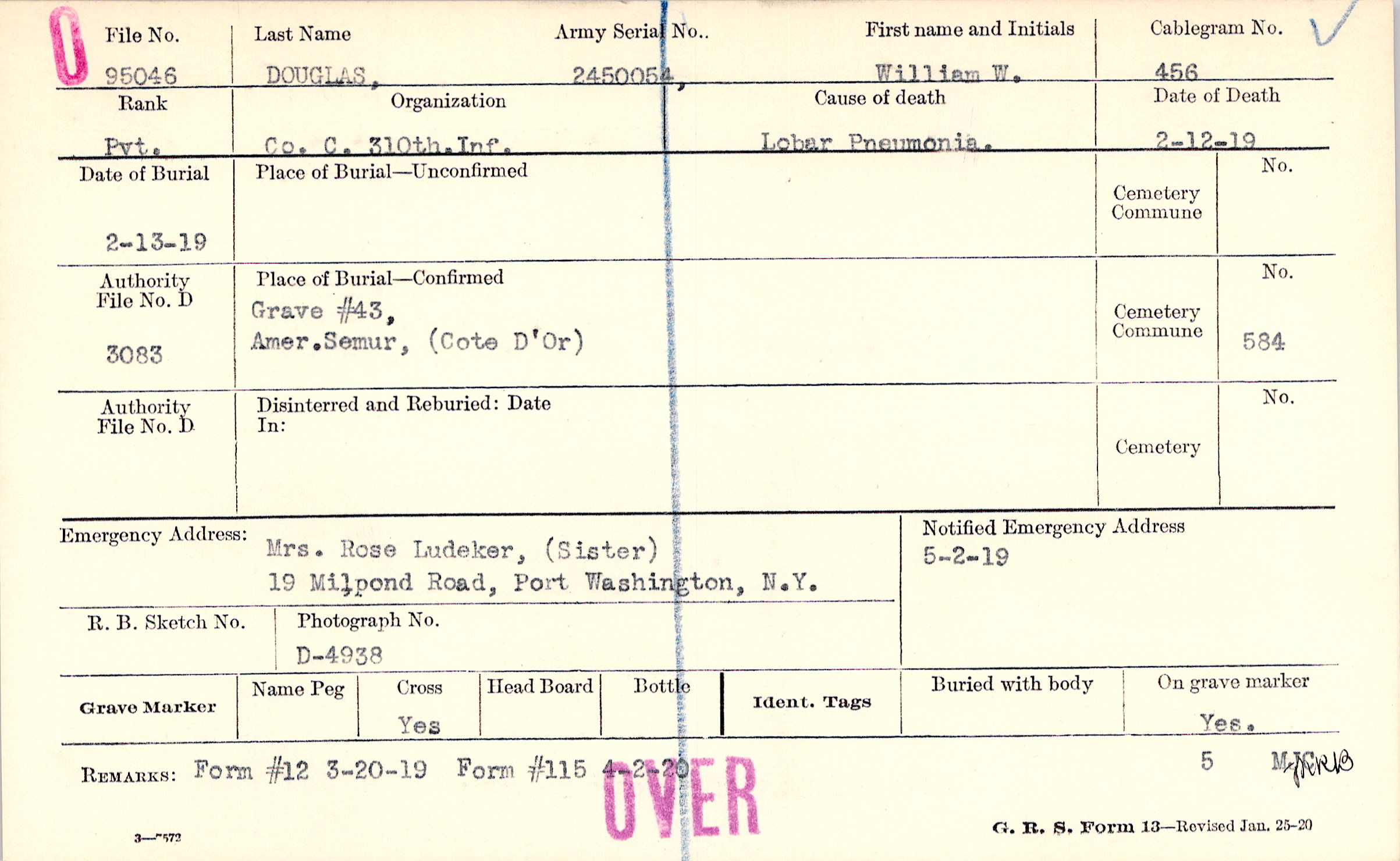 Mrs. Rose Ludeker, (Sister), 19 Milpond Road, Port Washington, N.Y.