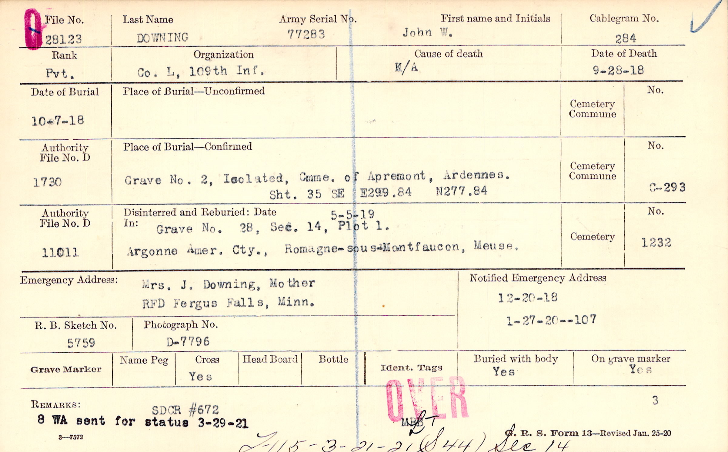 8 WA sent for status 3-29-21, F115 - 3-21-21 (S 44) Sec 14, SDCR #672