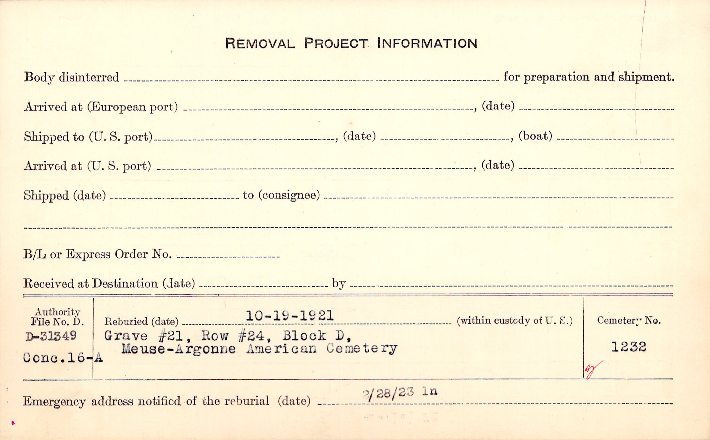 | Permanent Burial in Foreign Cemetery |