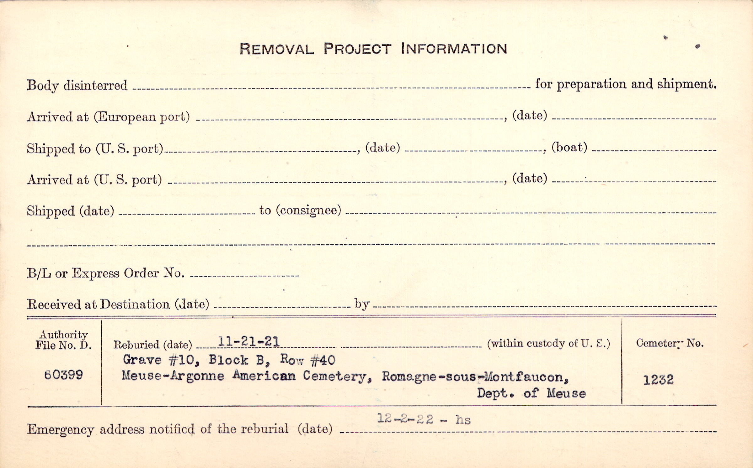 12/28/1918, Let Ret 3/6/1919, Renotified 5/26/1919