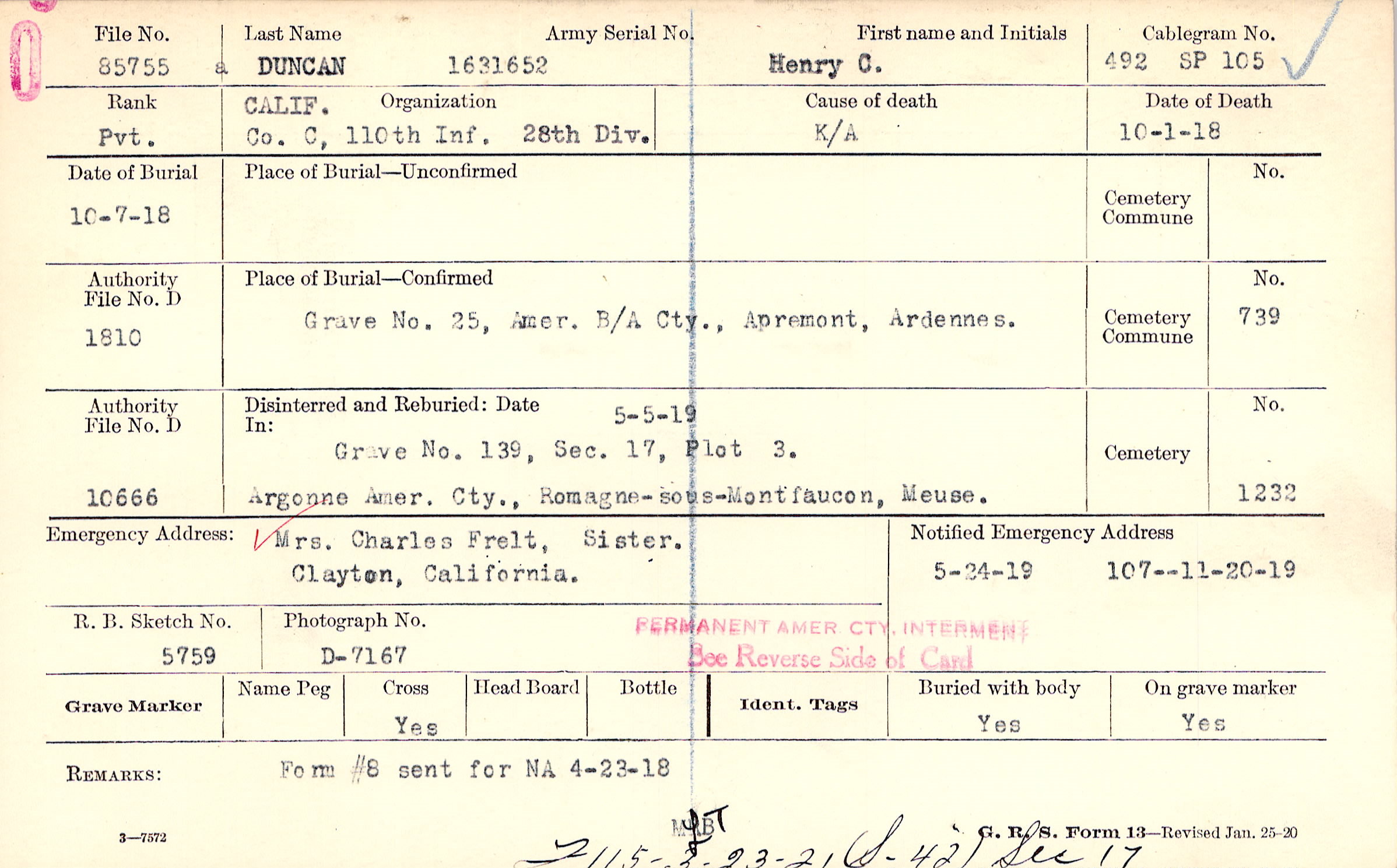 Grave 25, Amer. B/A Cty., Apremont, Ardennes