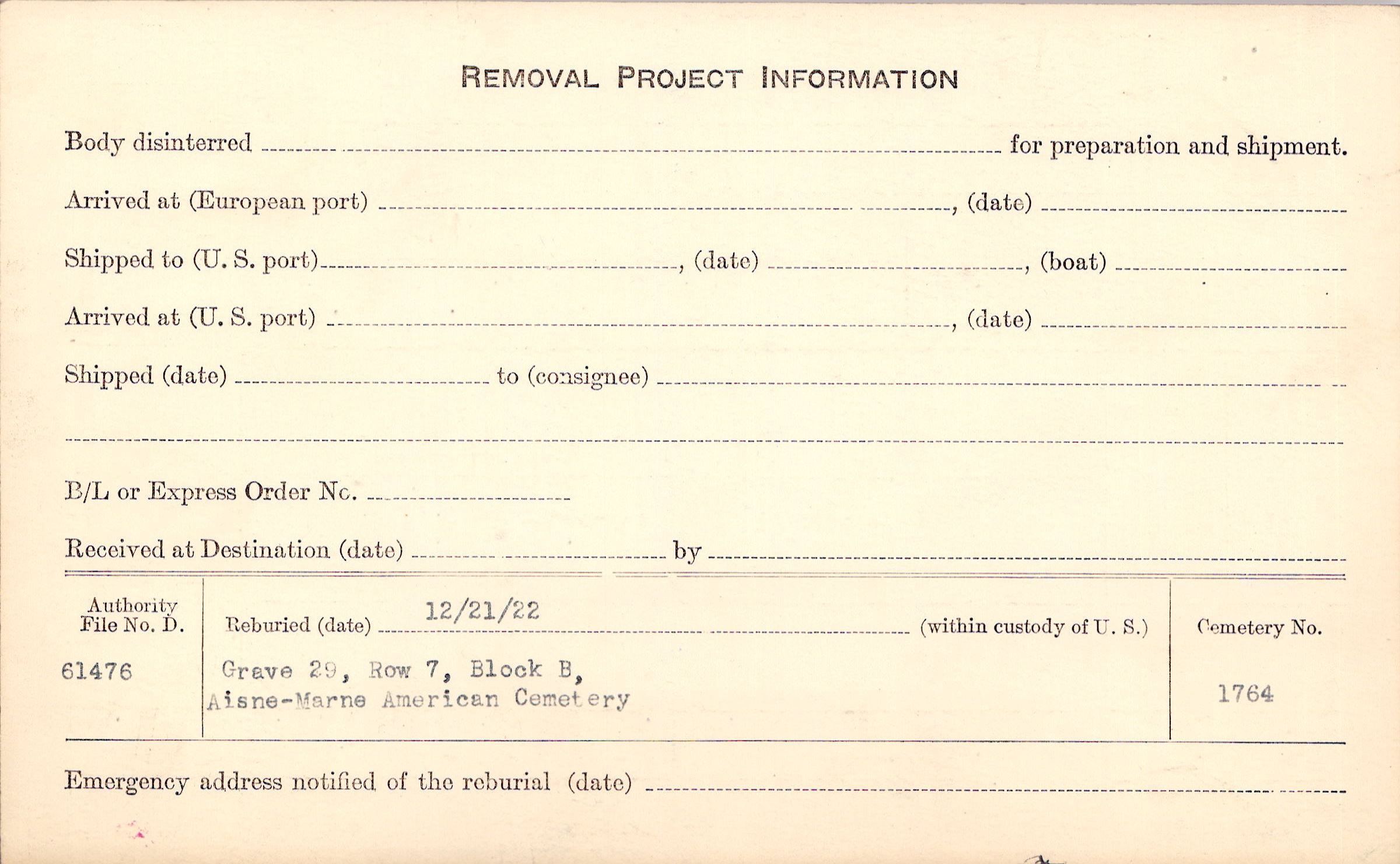 | Permanent Burial in Foreign Cemetery |