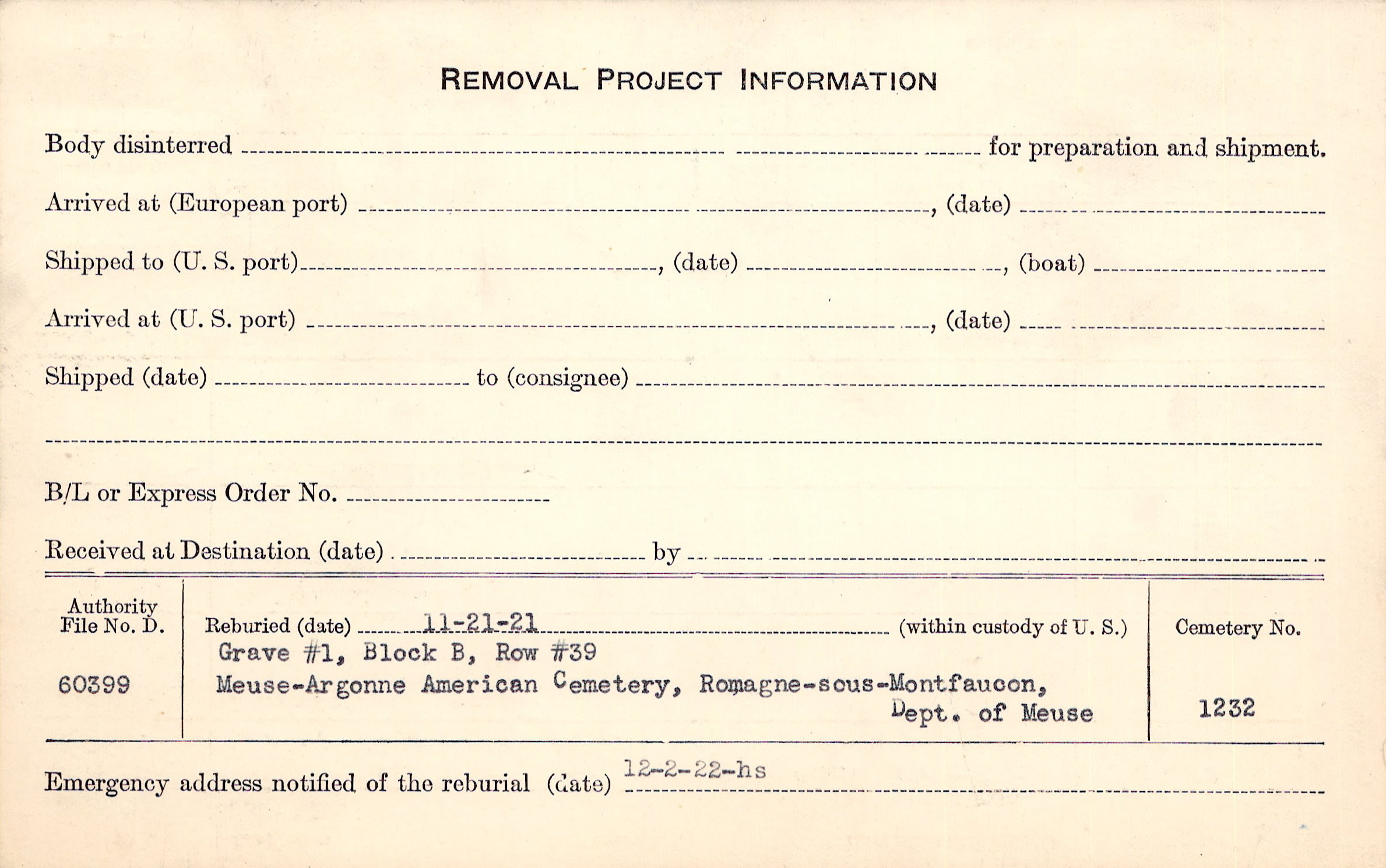 Grave #943, Amer. Cty., Bazoilles-sur-Meuse, Vosges, France