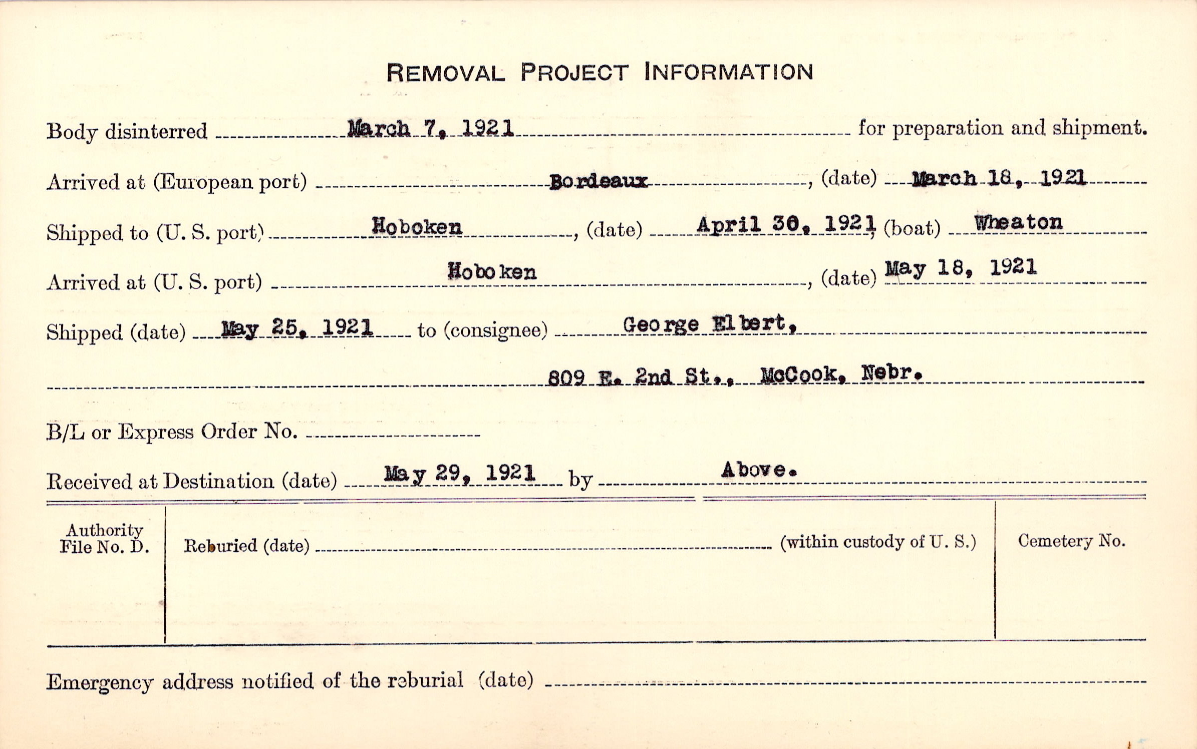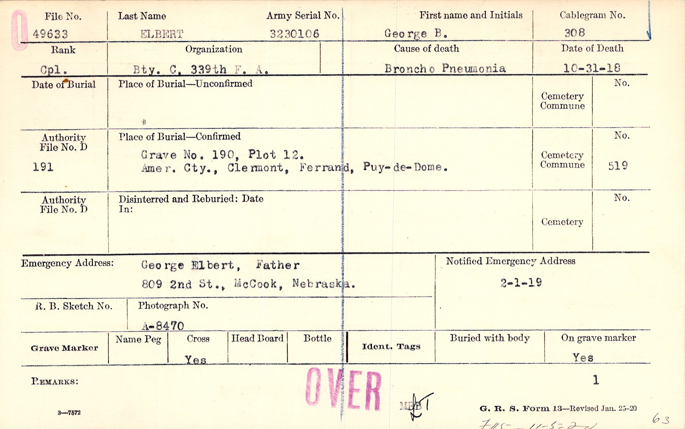 George Elbert, Father, 809 2nd St., McCook, Nebraska.