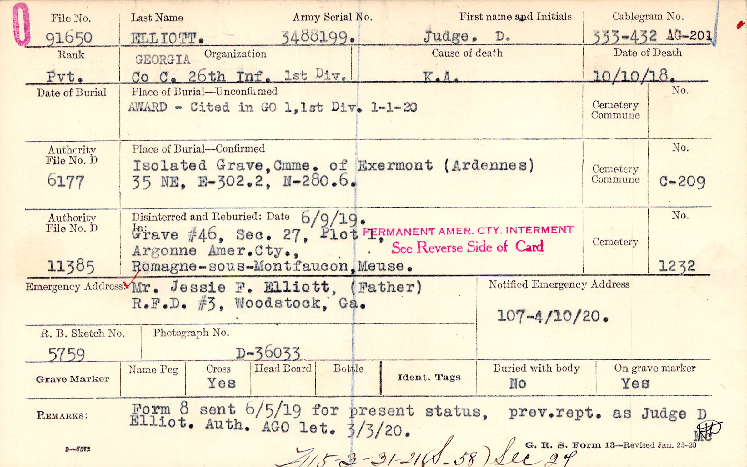 Mr. Jessie F. Elliott, (Father), R.F.D. #3, Woodstock, Ga.