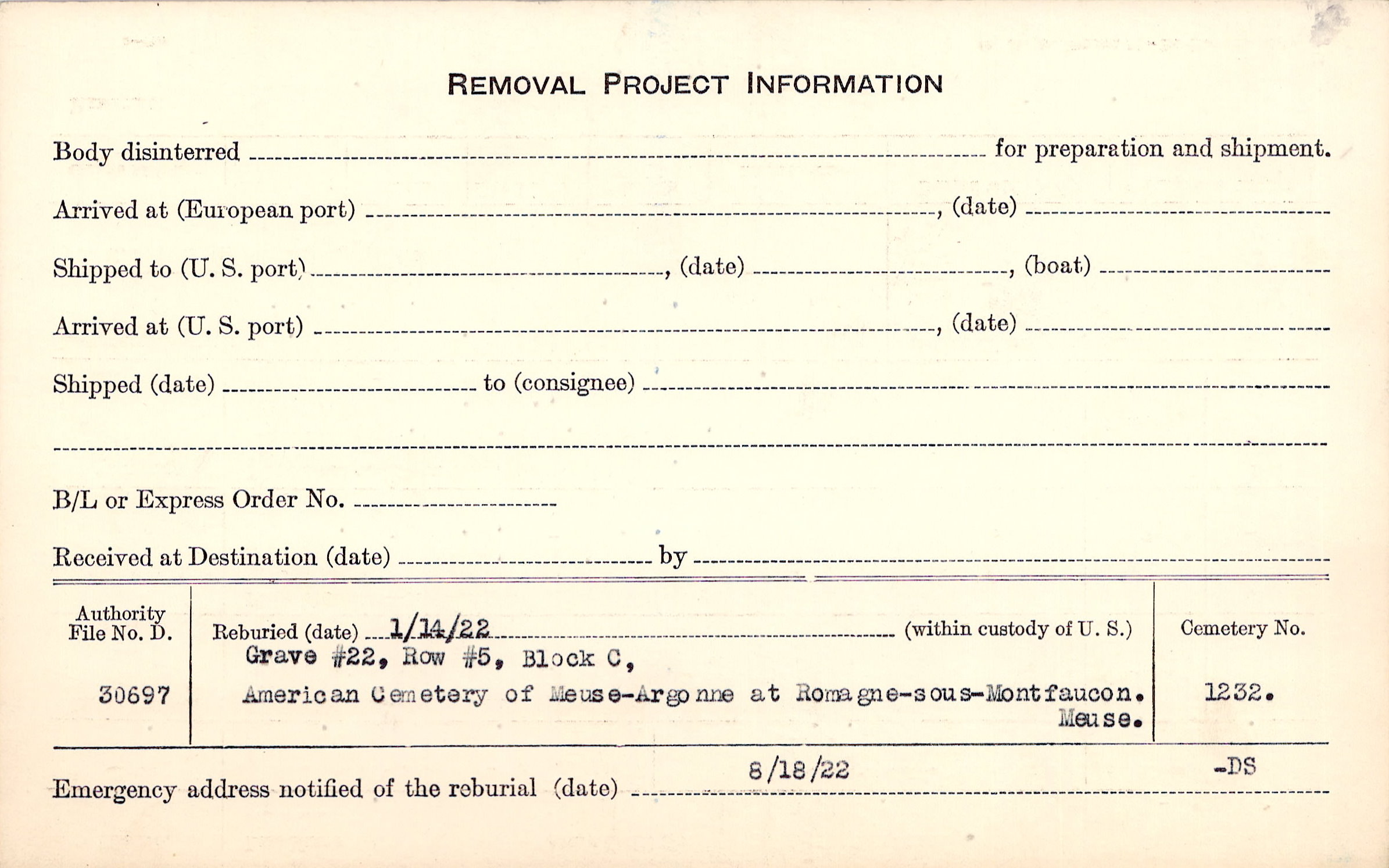 Grave 46, Section 27, Plot 1, Argonne American Cemetery, Romagne-sous-Montfaucon, Meuse
