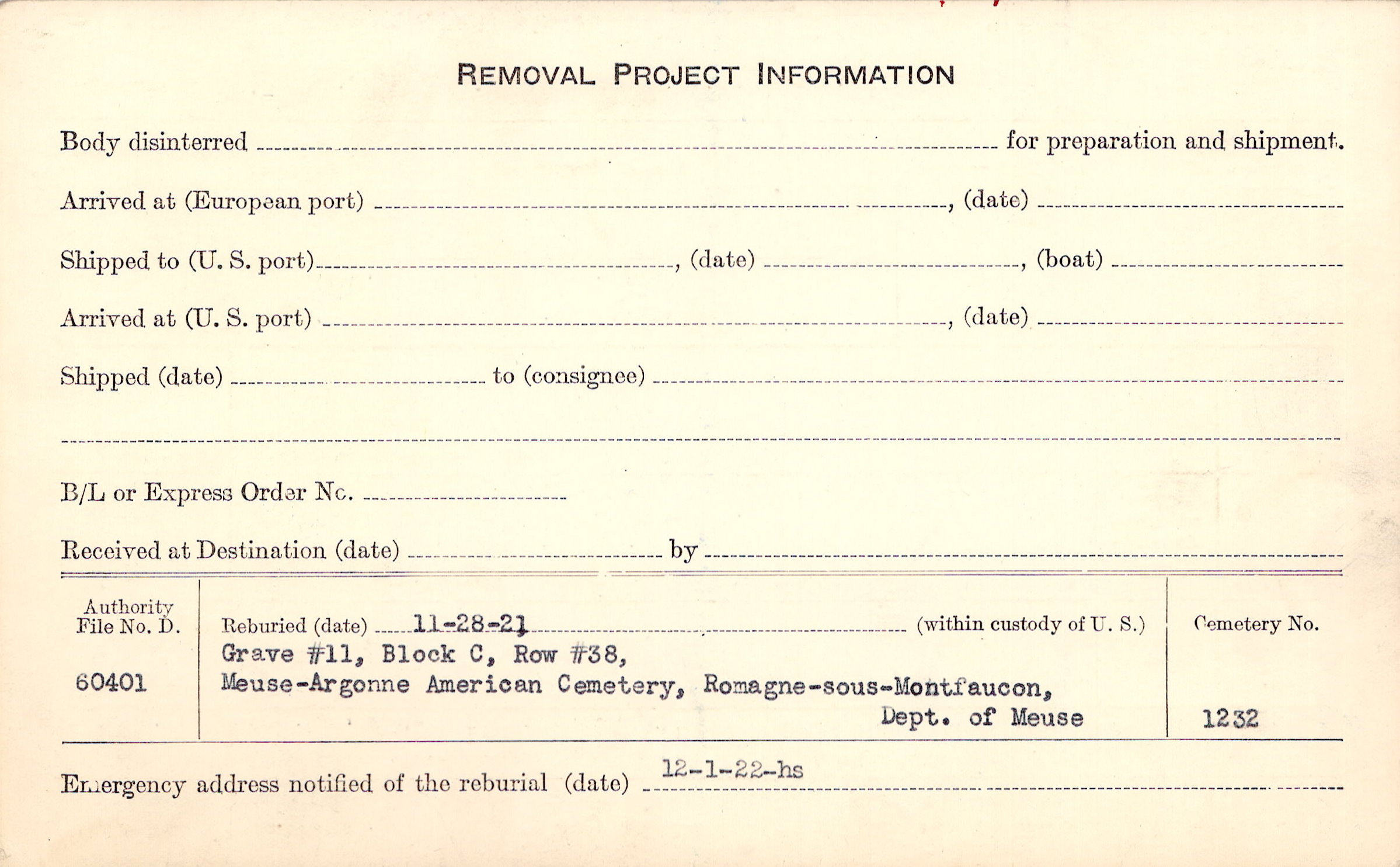 Grave #355, Amer. Cty., Bazoilles-sur-Meuse, Vosges.