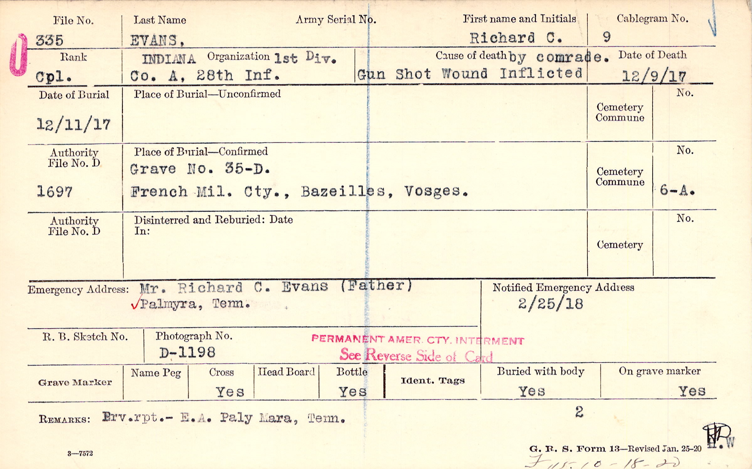 Grave 35-D, French Mil. Cty., Bazeilles, Vosges.
