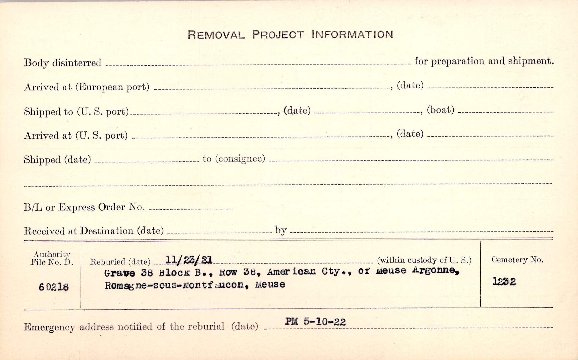 | Permanent Burial in Foreign Cemetery |