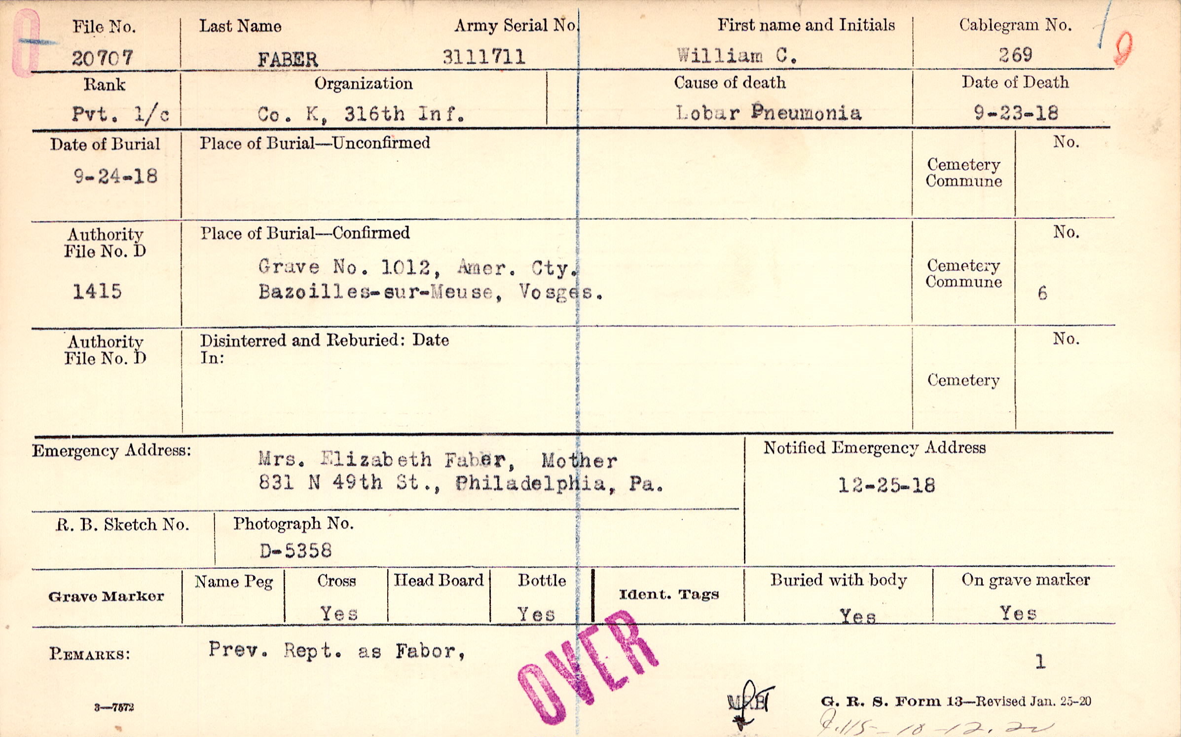 Mrs. Elizabeth Faber, Mother, 831 N 49th St., Philadelphia, Pa.