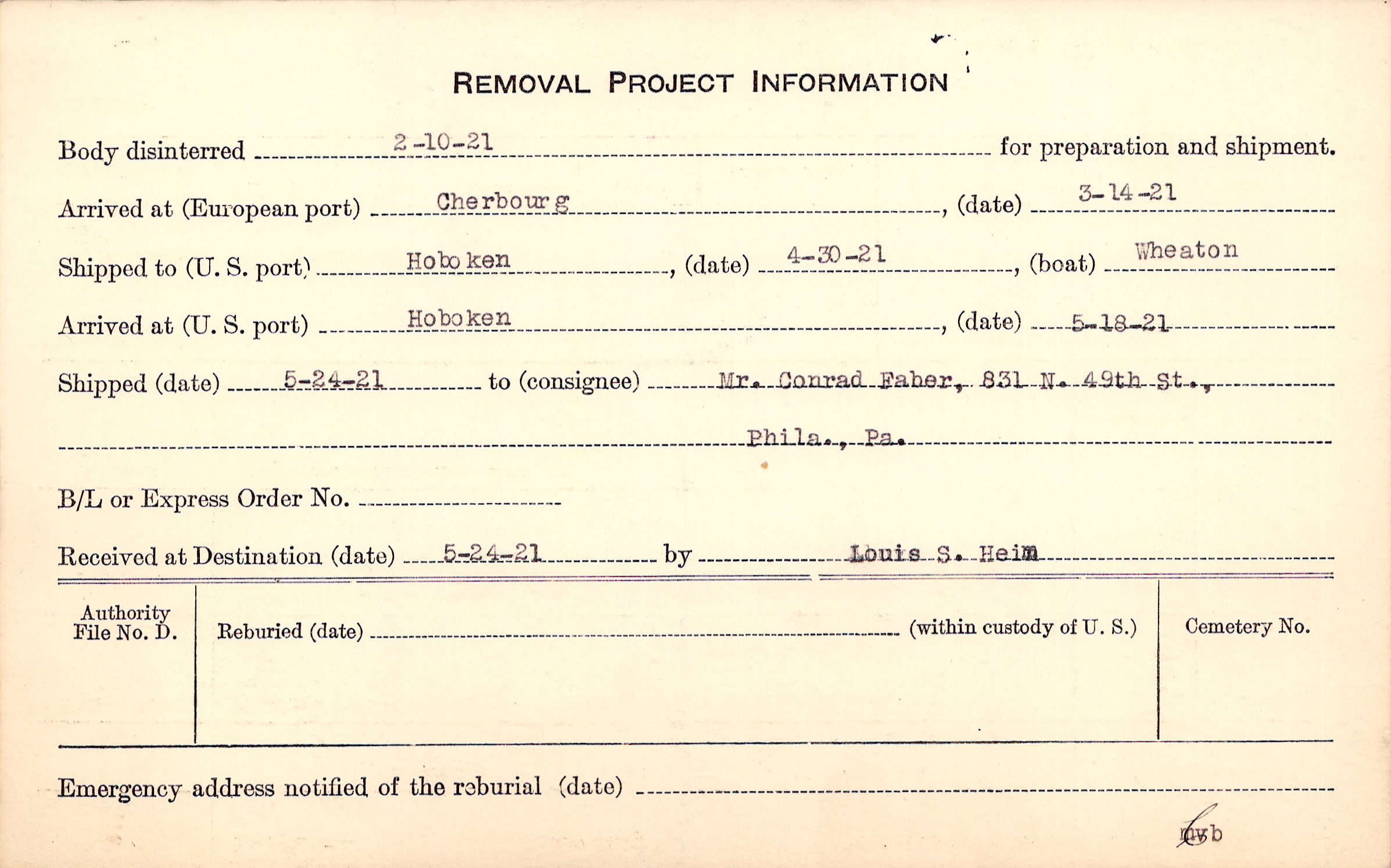 to Mr. Conrad Faber, 831 N. 49th St., Phila., Pa.