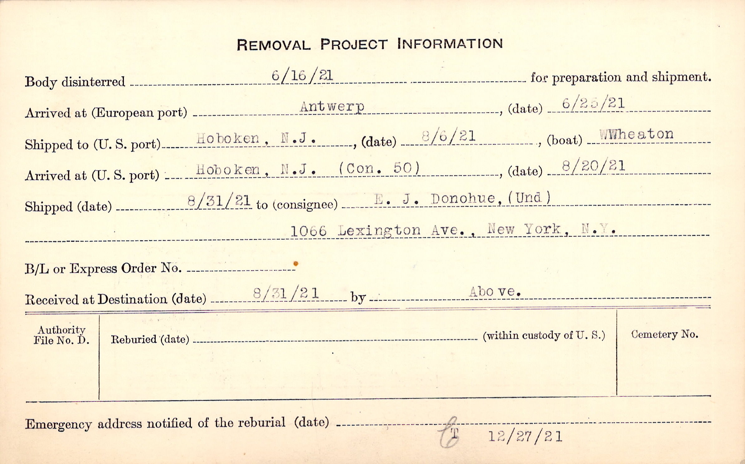to E. J. Donohue, (Und), 1066 Lexington Ave., New York, N. Y.